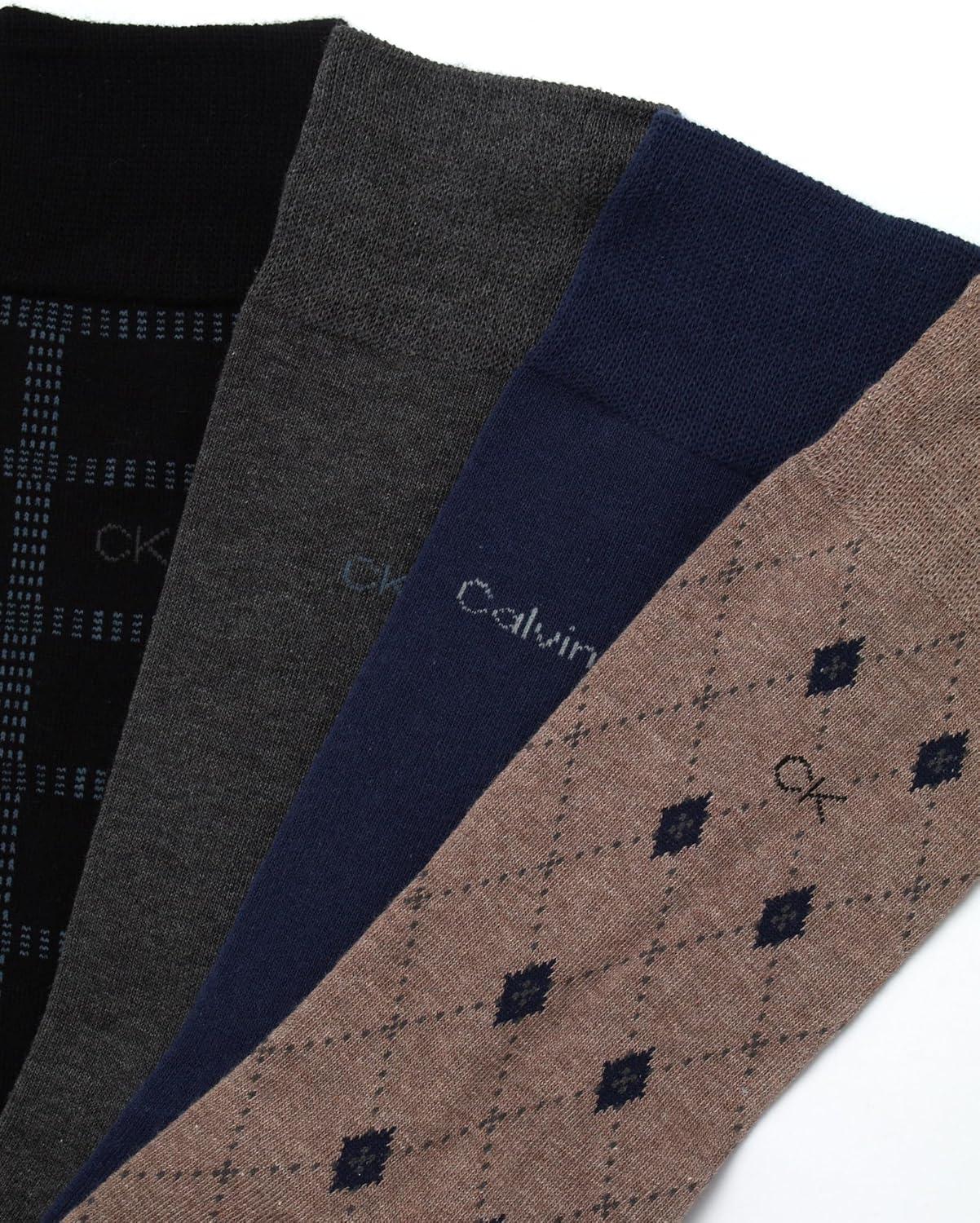 Calvin Klein Men's Crew Socks - 4 Pack Lightweight Combed Cotton Blend Dress Socks - Breathable Socks for Men (7-12)(Brown Heather)