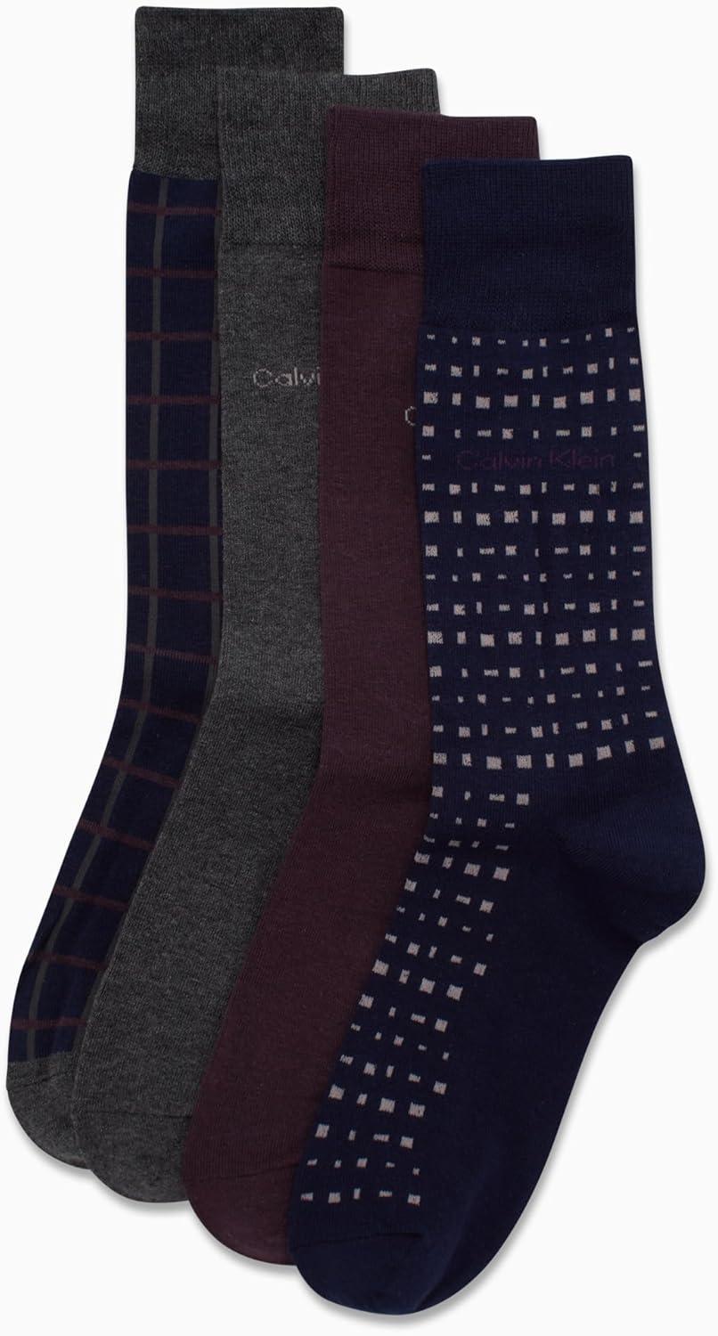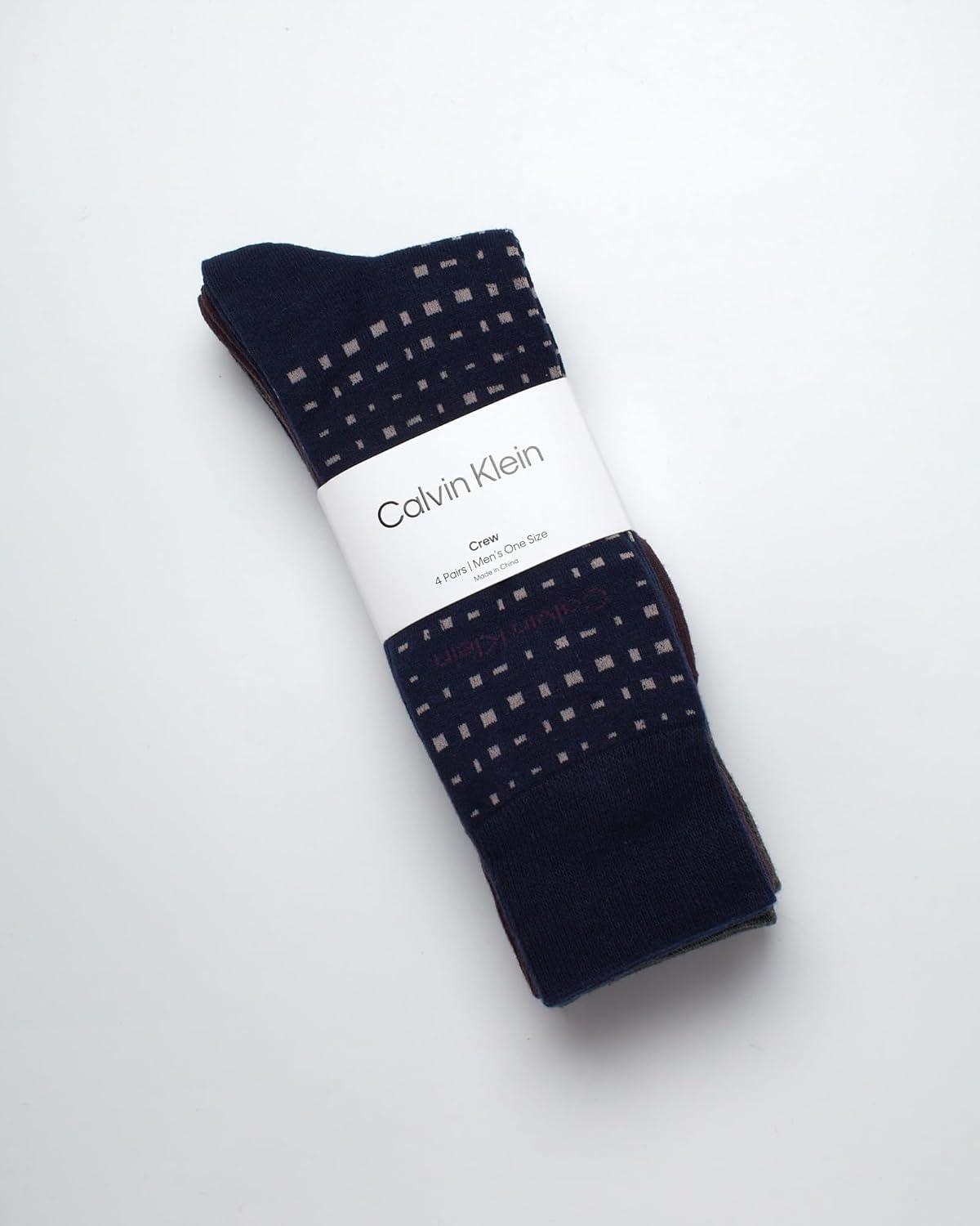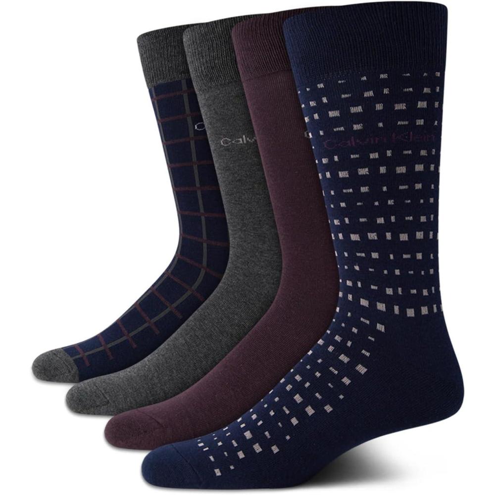 Calvin Klein Men's Crew Socks - 4 Pack Lightweight Combed Cotton Blend Dress Socks - Breathable Socks for Men (7-12)(Navy Multi)