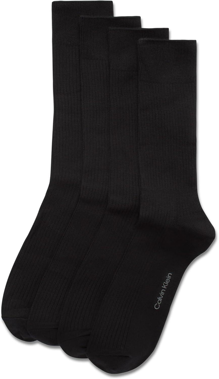 Calvin Klein Men's Crew Socks - 4 Pack Lightweight Combed Cotton Blend Dress Socks - Breathable Socks for Men (7-12)(Solid Black)