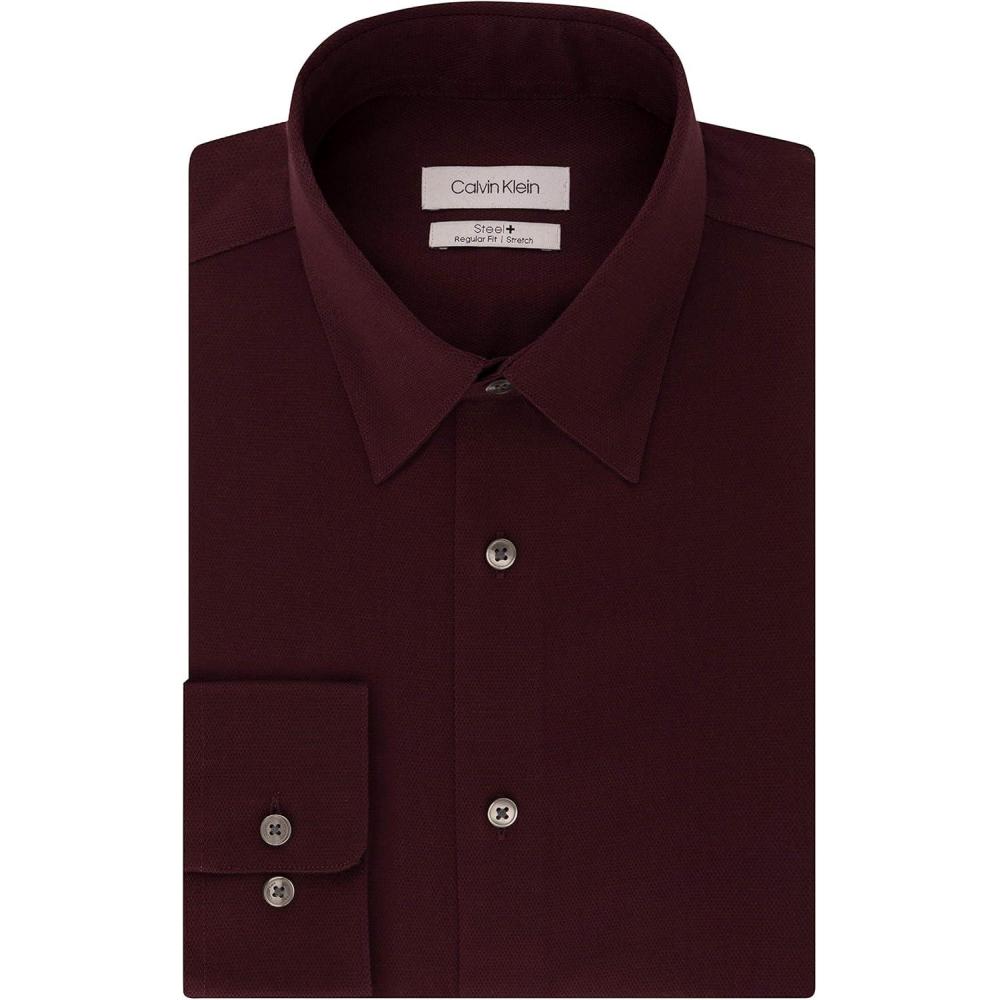 Calvin Klein Men’s Dress Shirt Regular Fit Non Iron Stretch Solid(Wine)