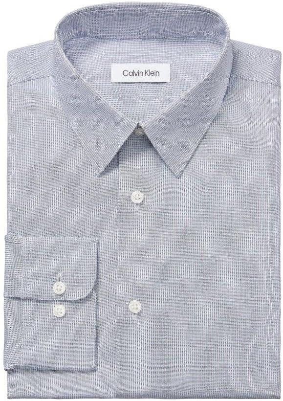 Calvin Klein Men’s Dress Shirt Slim Fit Non Iron Herringbone Spread Collar(Blue Multi)