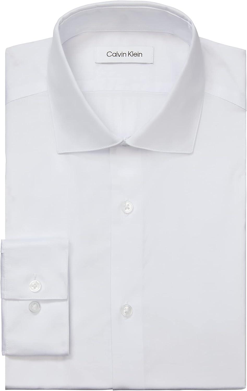 Calvin Klein Men’s Dress Shirt Slim Fit Non Iron Herringbone Spread Collar(White)