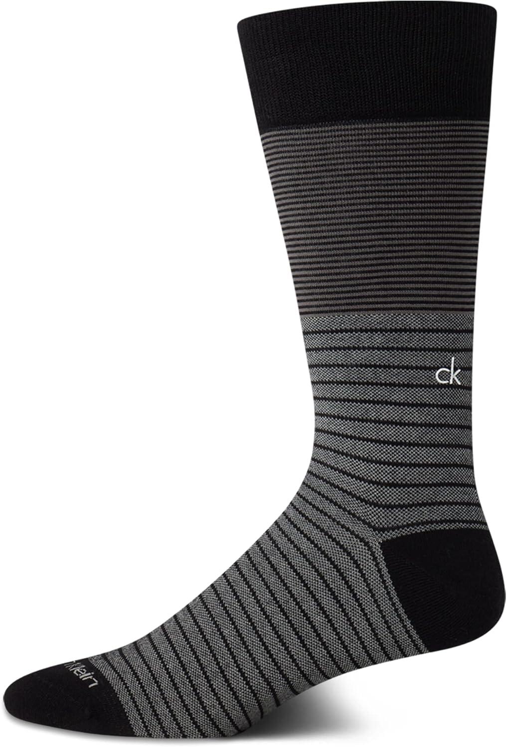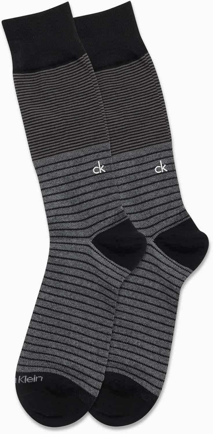 Calvin Klein Mens Dress Socks – 2 Pairs Egyptian Cotton Blend Comfort Stay Up Cuff Crew Socks for Men (7-12)(Black Diamond)
