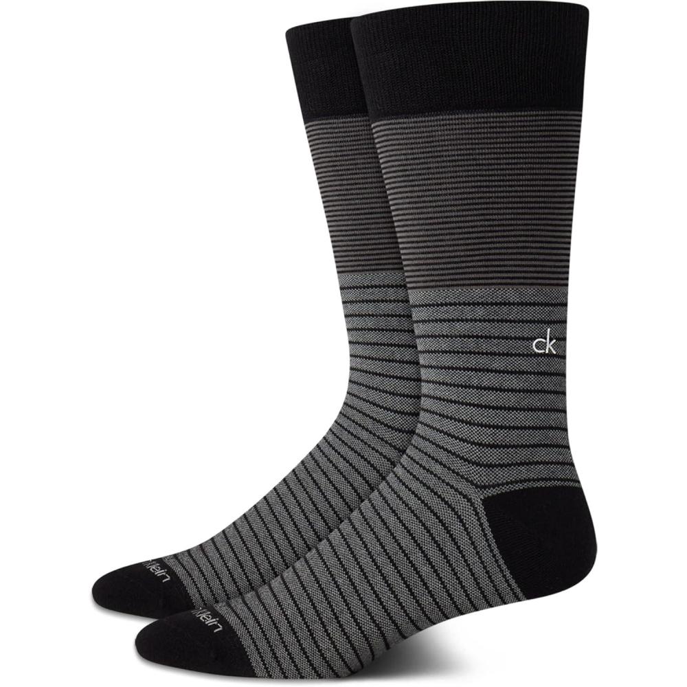 Calvin Klein Mens Dress Socks - 2 Pairs Egyptian Cotton Blend Comfort Stay Up Cuff Crew Socks for Men (7-12)(Black Pattern)
