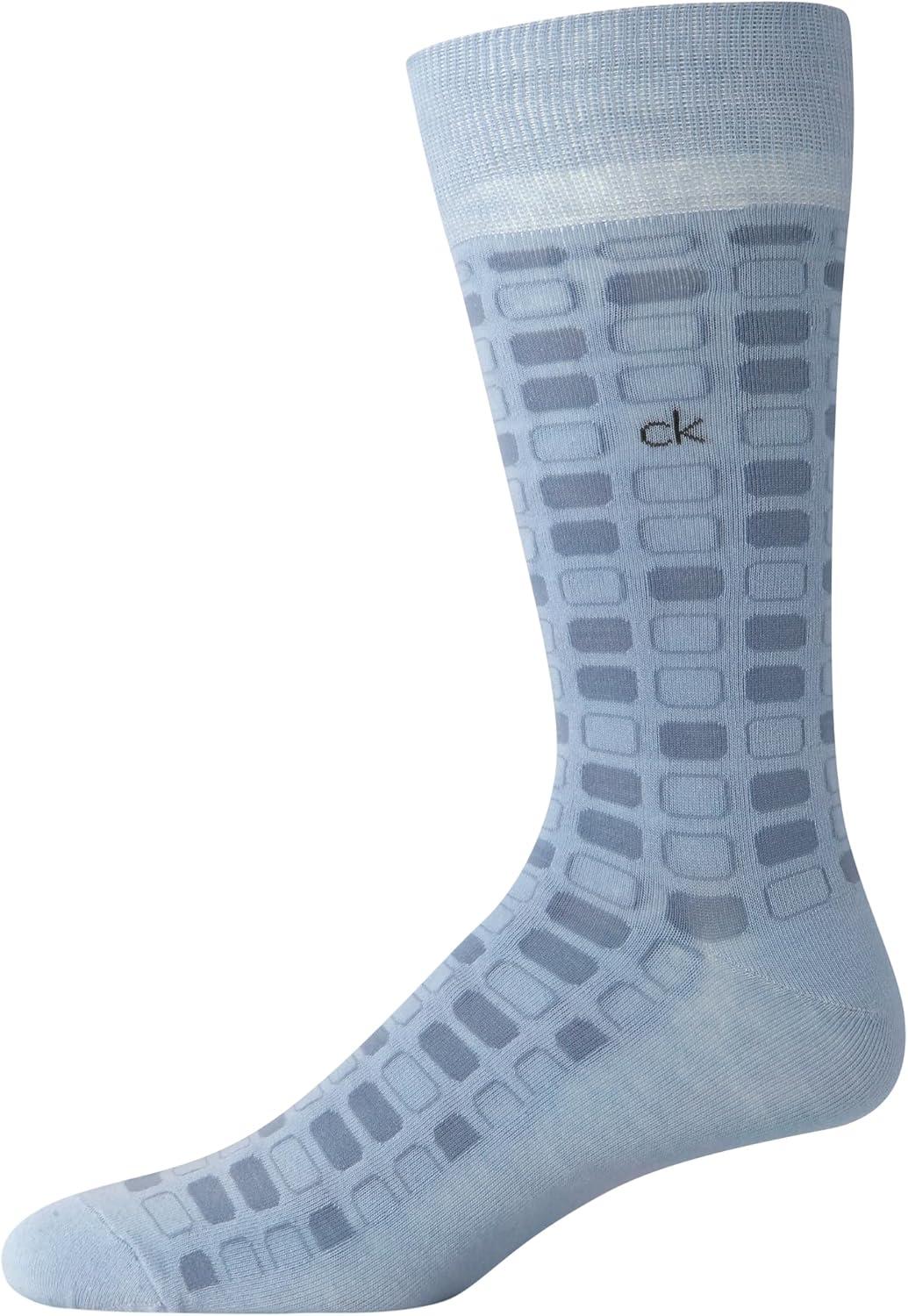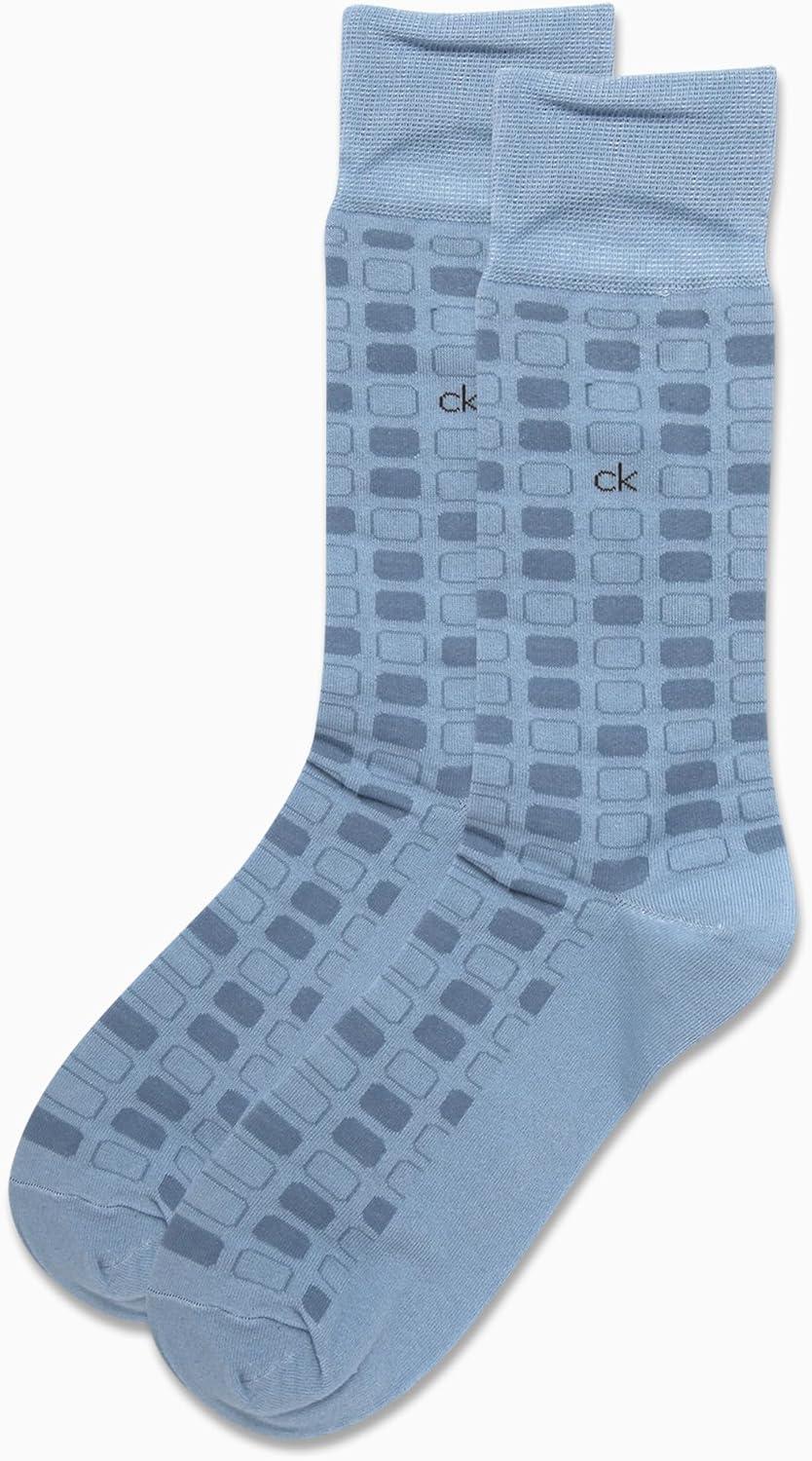 Calvin Klein Mens Dress Socks - 2 Pairs Egyptian Cotton Blend Comfort Stay Up Cuff Crew Socks for Men (7-12)(Light Blue Pattern)