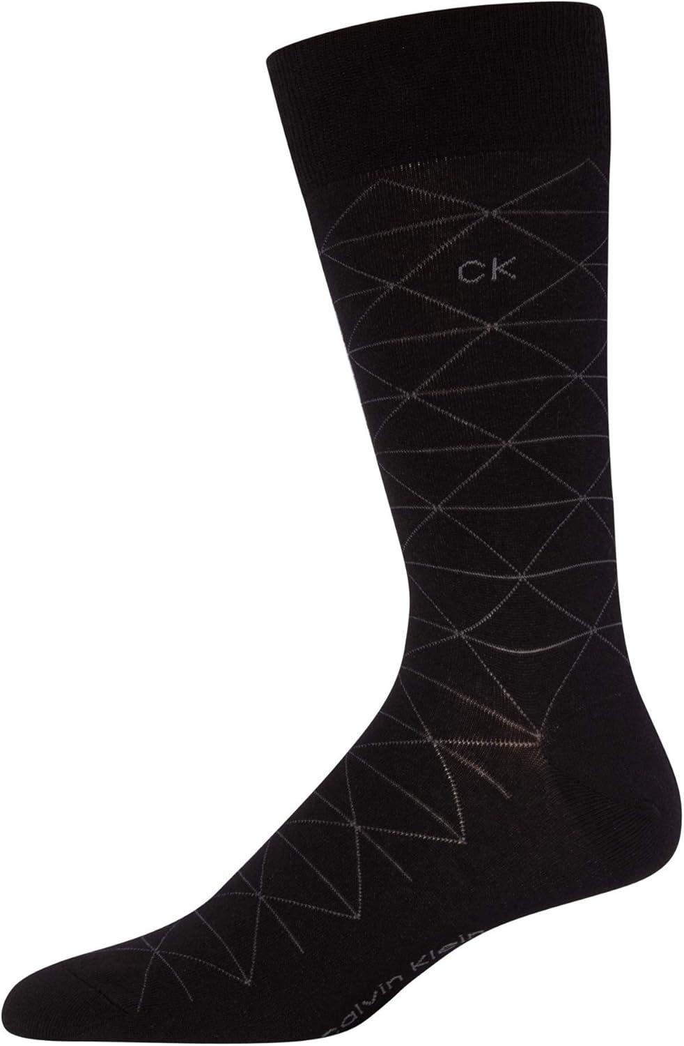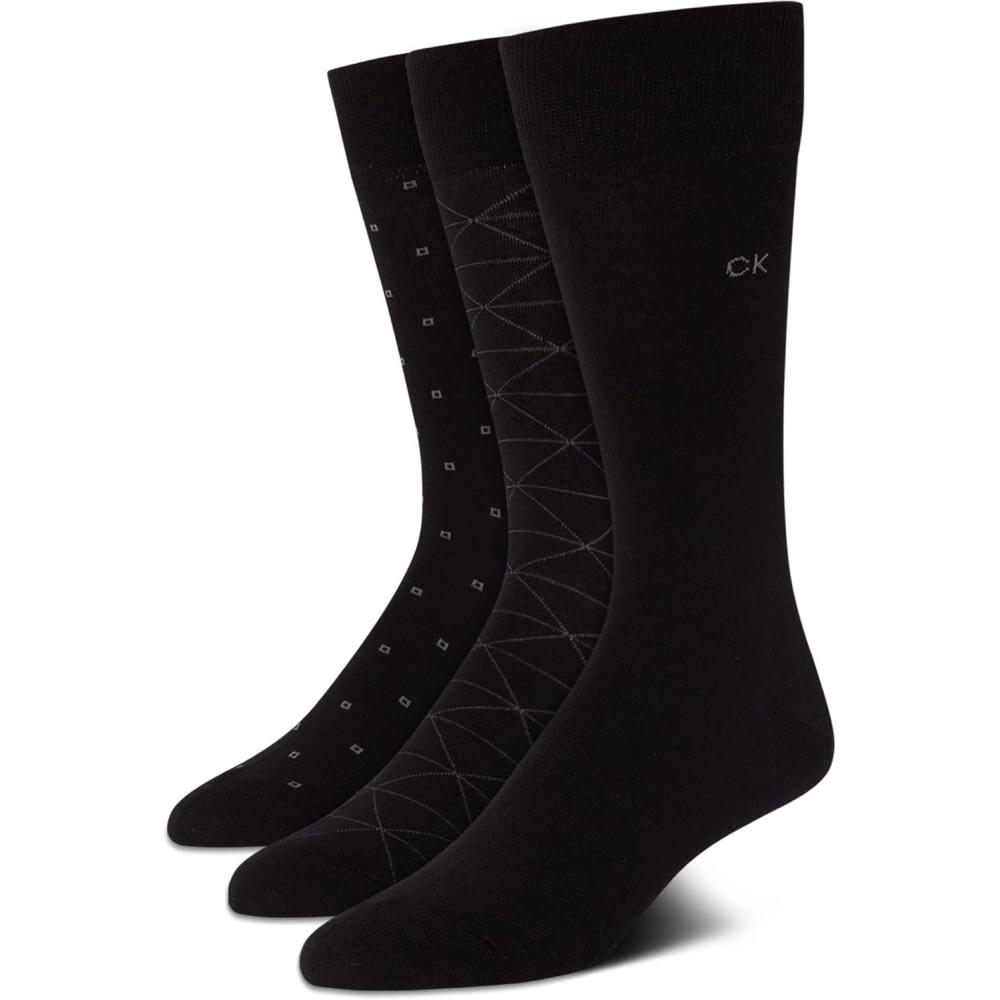 Calvin Klein Men's Dress Socks - 3 Pack Patterned Crew Socks(Black Geometric)