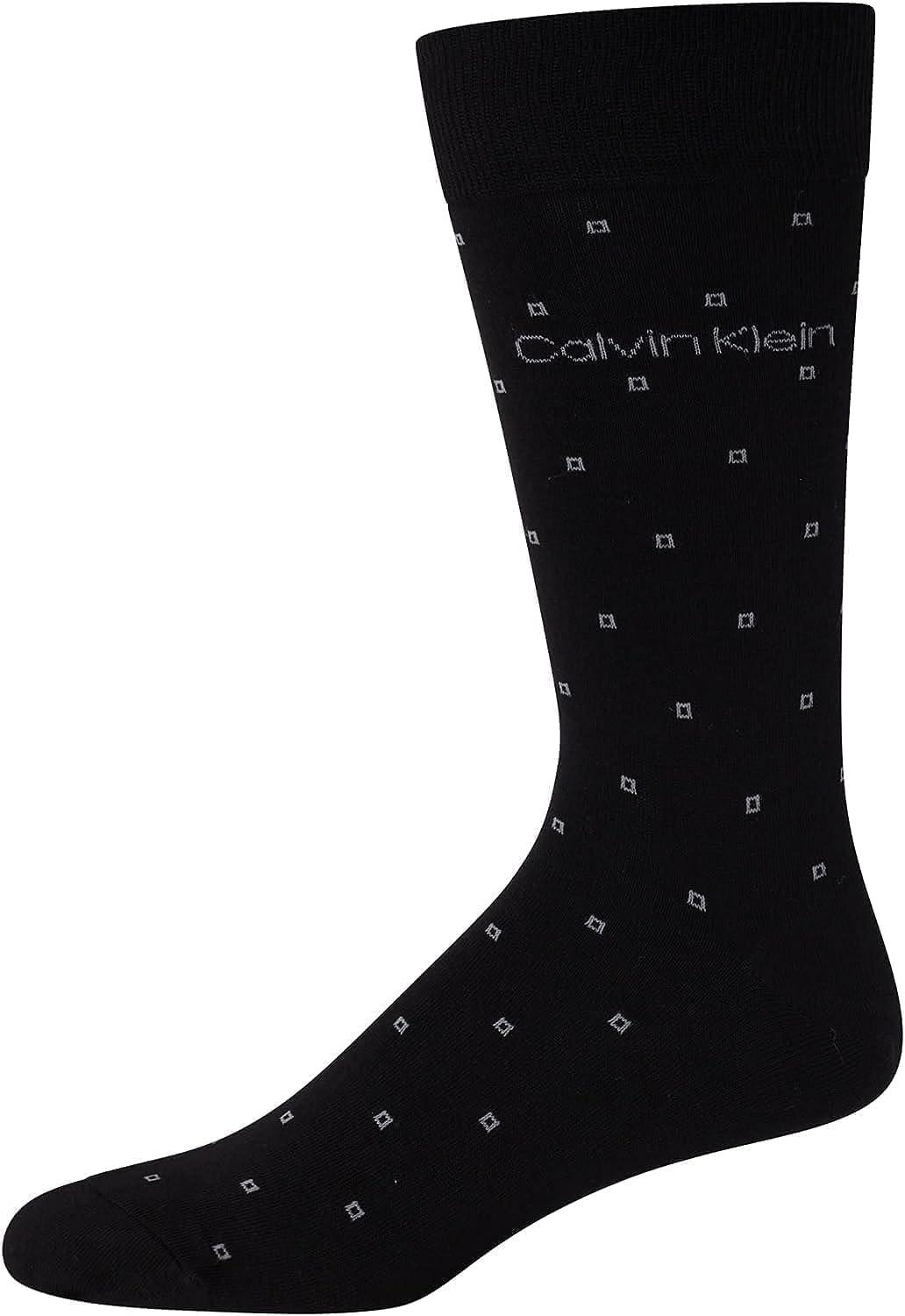 Calvin Klein Men’s Dress Socks – 3 Pack Patterned Crew Socks(Black Grey Assorted)