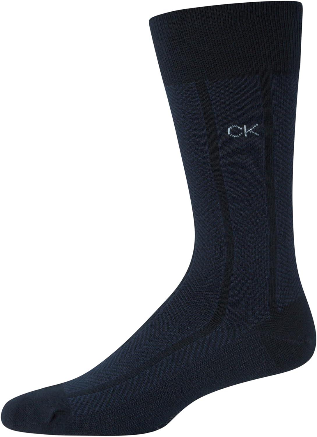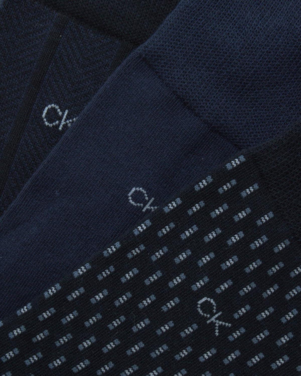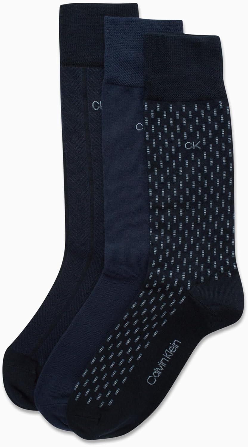 Calvin Klein Men's Dress Socks - 3 Pack Patterned Crew Socks(Navy Combo)