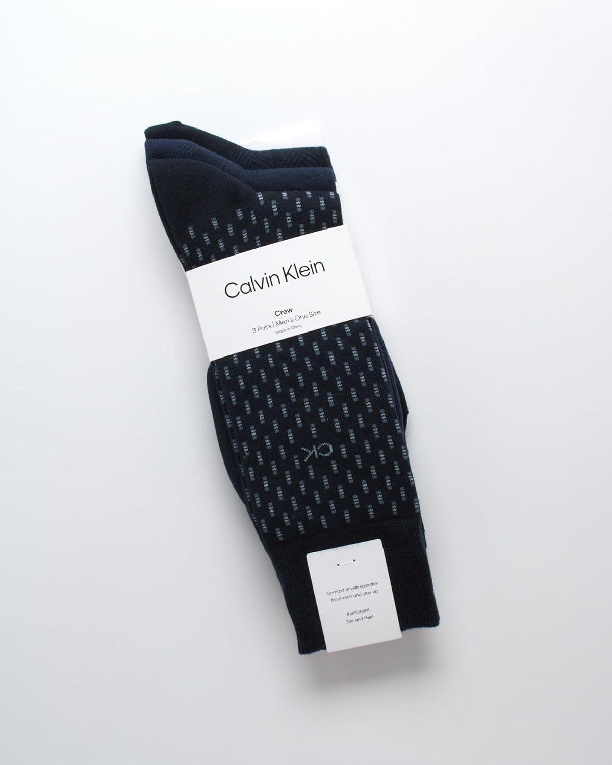 Calvin Klein Men’s Dress Socks – 3 Pack Patterned Crew Socks(Navy Combo)