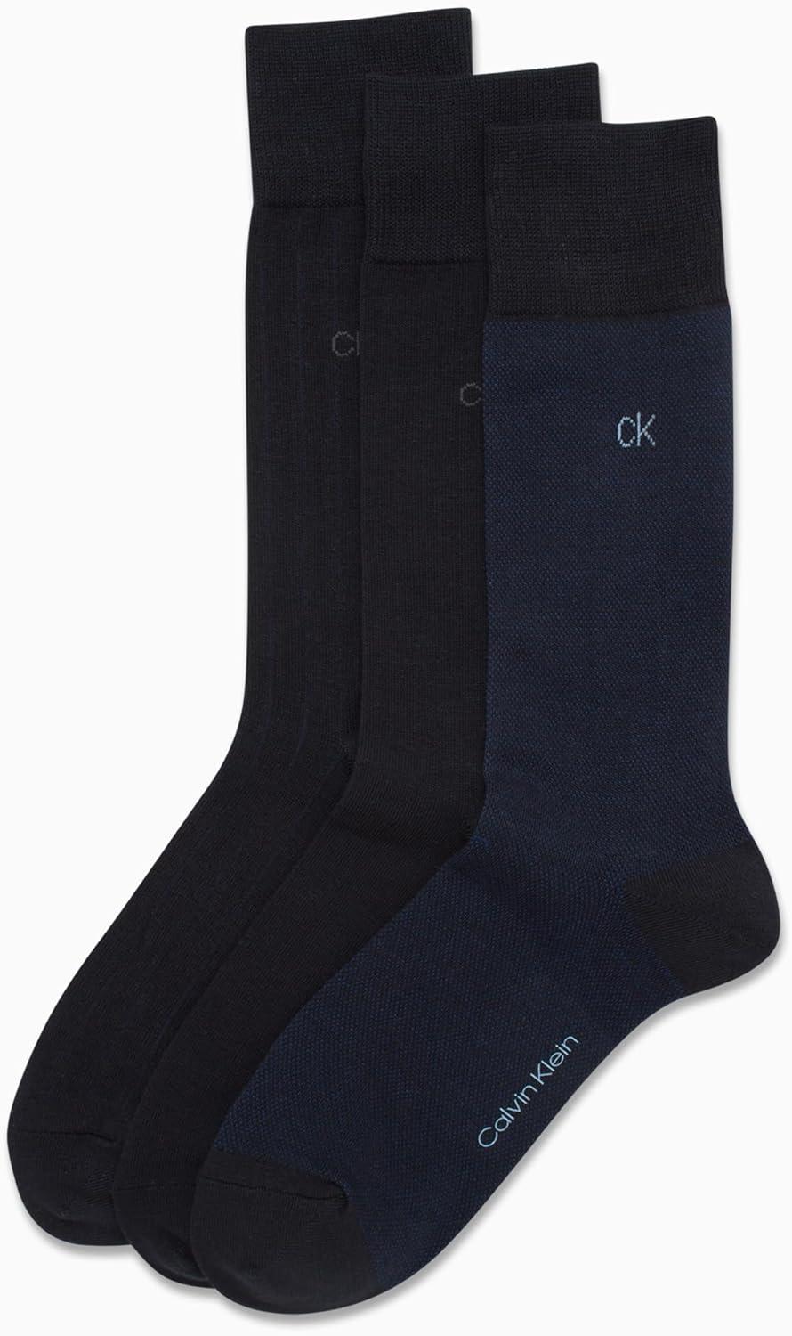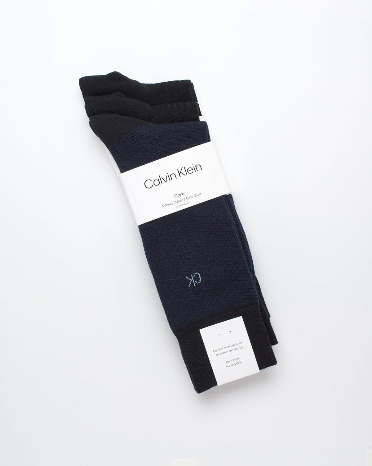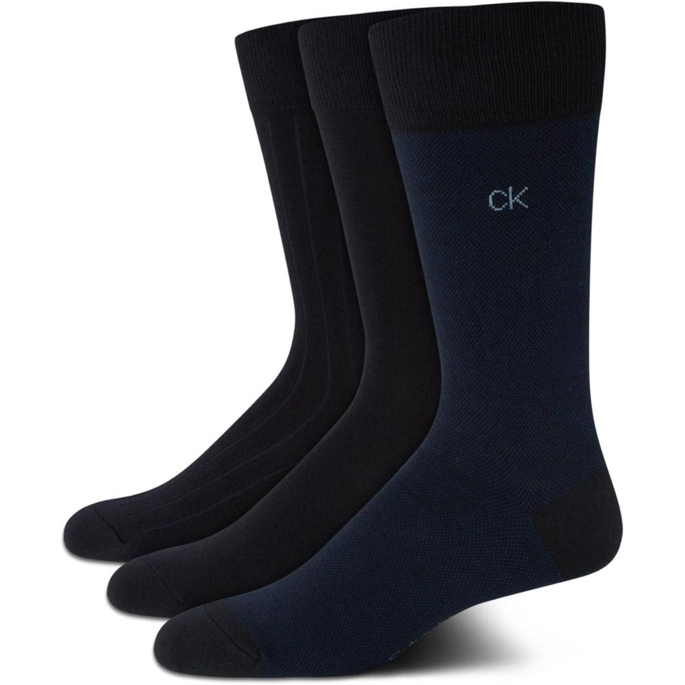 Calvin Klein Men’s Dress Socks – 3 Pack Patterned Crew Socks(Navy/Grey/Black)