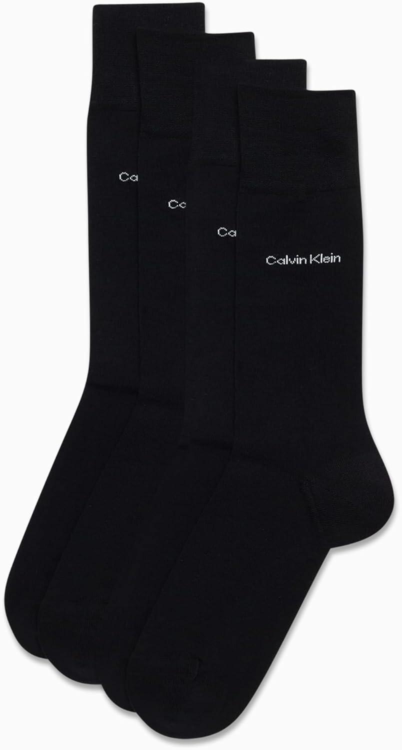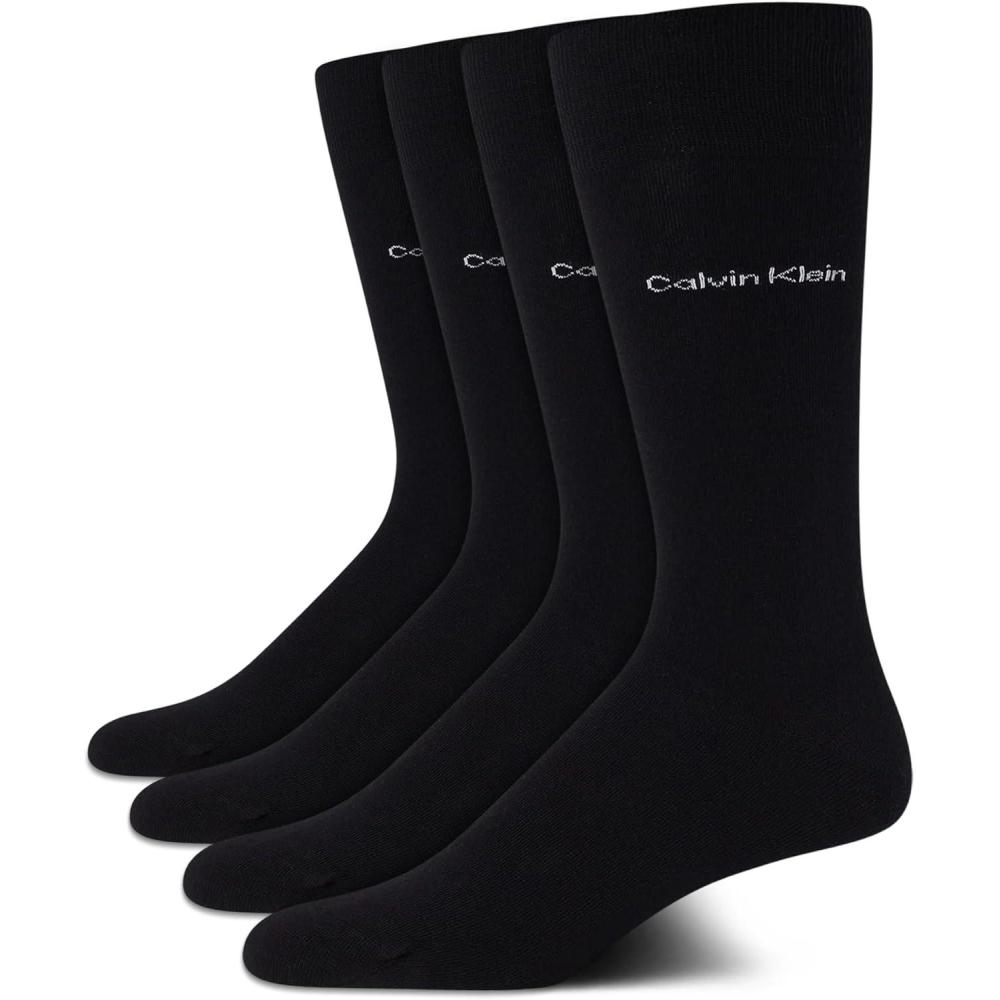 Calvin Klein Men's Dress Socks - 4 Pack Soft Cotton Blend, Striped Crew Socks - Casual Long Work Socks for Men (Sizes: 7-12)(All Black)