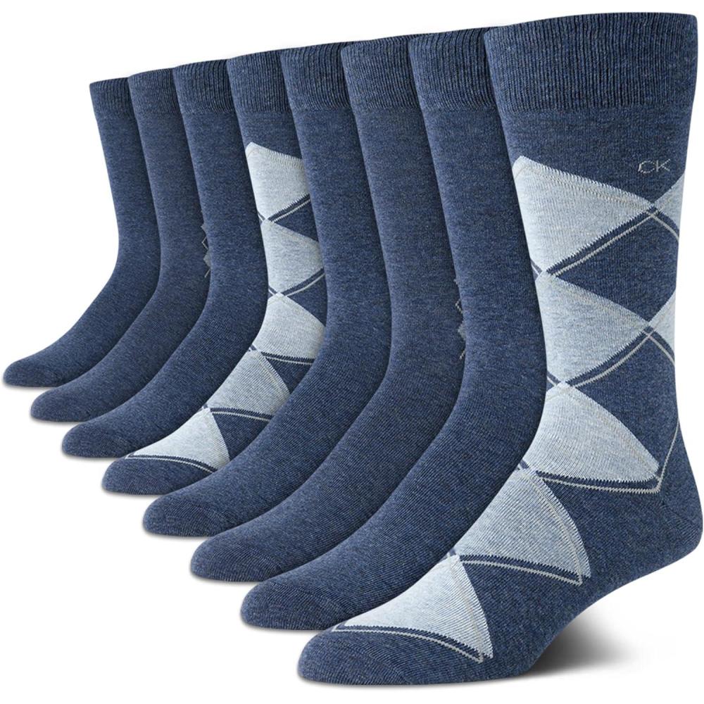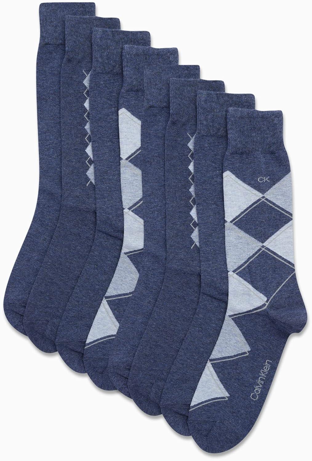Calvin Klein Men’s Dress Socks – 8 Pack Breathable Cotton Blend Crew Socks – Casual Long Work Sock for Men (Sizes: 7-12)(Blue Argyle)