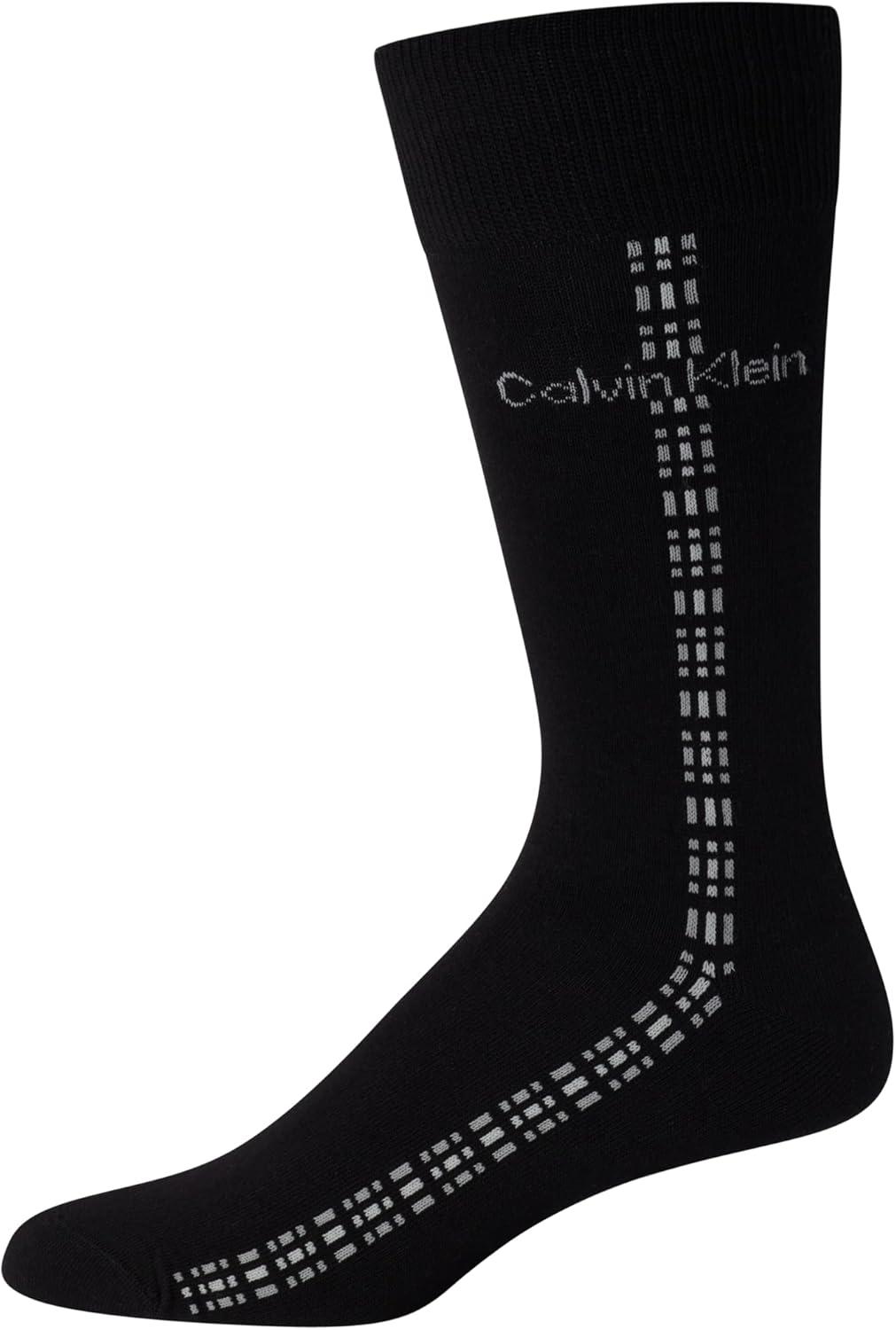 Calvin Klein Mens Dress Socks – 8 Pack Breathable Cotton Blend Work Crew Socks for Men for Casual Business & Formal Wear(Black Texture)