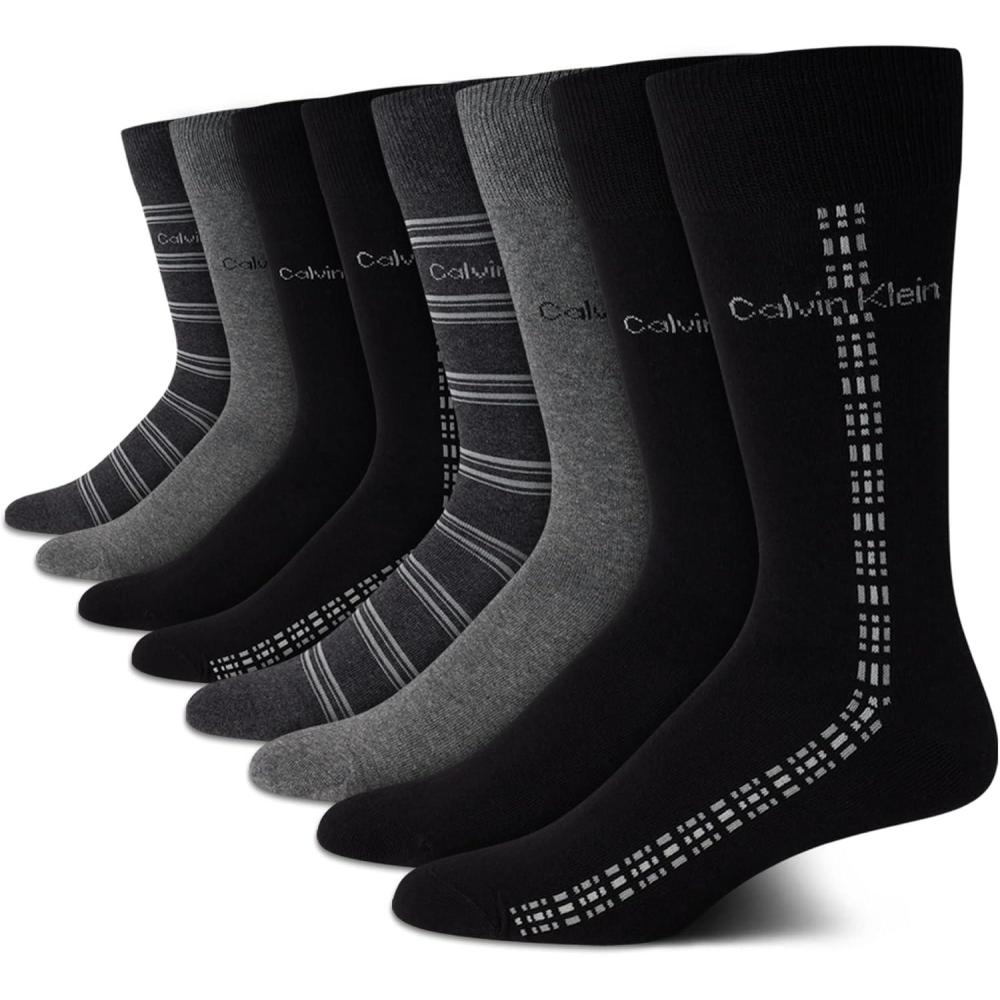 Calvin Klein Mens Dress Socks - 8 Pack Breathable Cotton Blend Work Crew Socks for Men for Casual Business & Formal Wear(Black/Grey Multi)