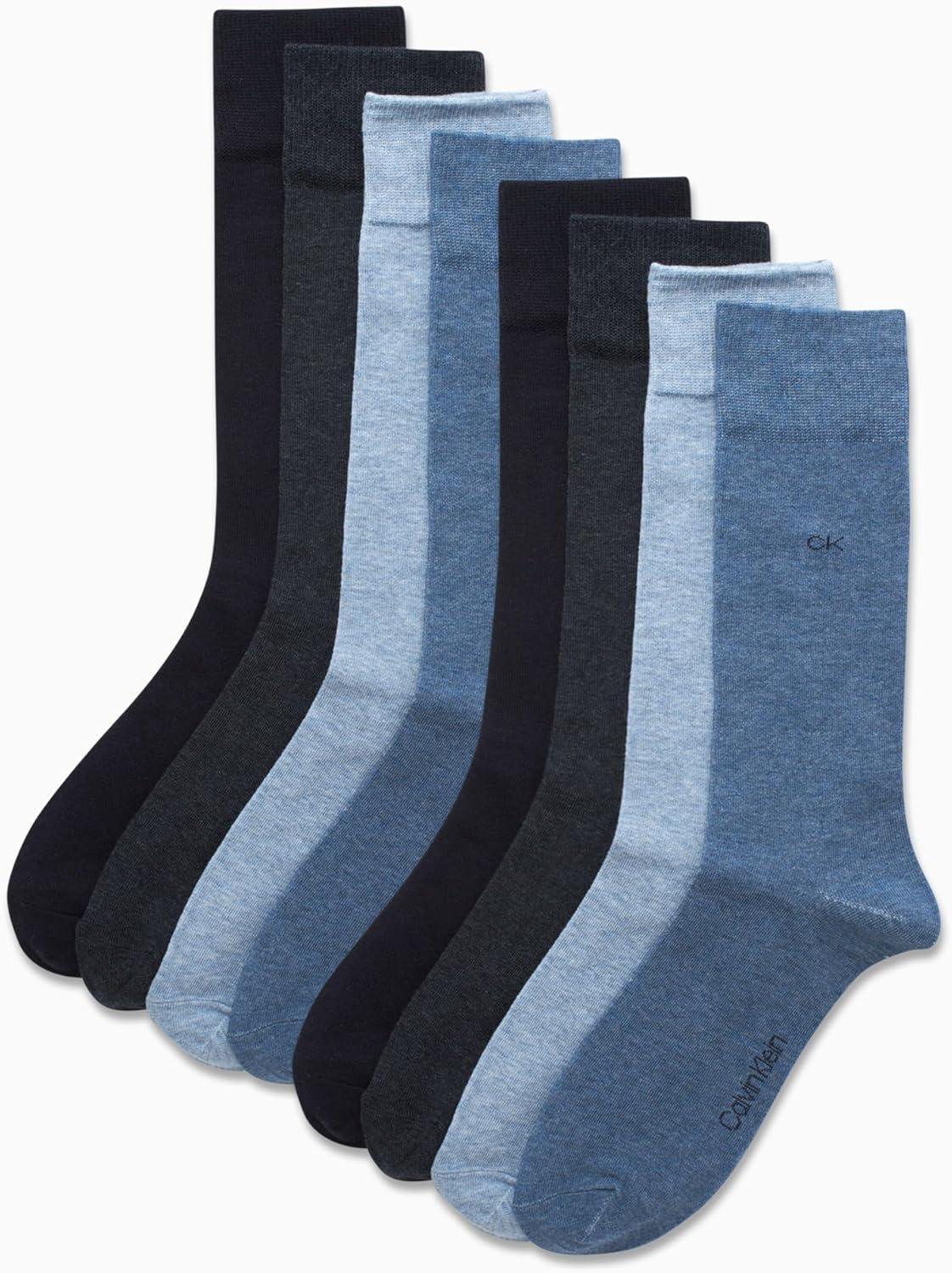 Calvin Klein Mens Dress Socks - 8 Pack Breathable Cotton Blend Work Crew Socks for Men for Casual Business & Formal Wear(Blue Solid)