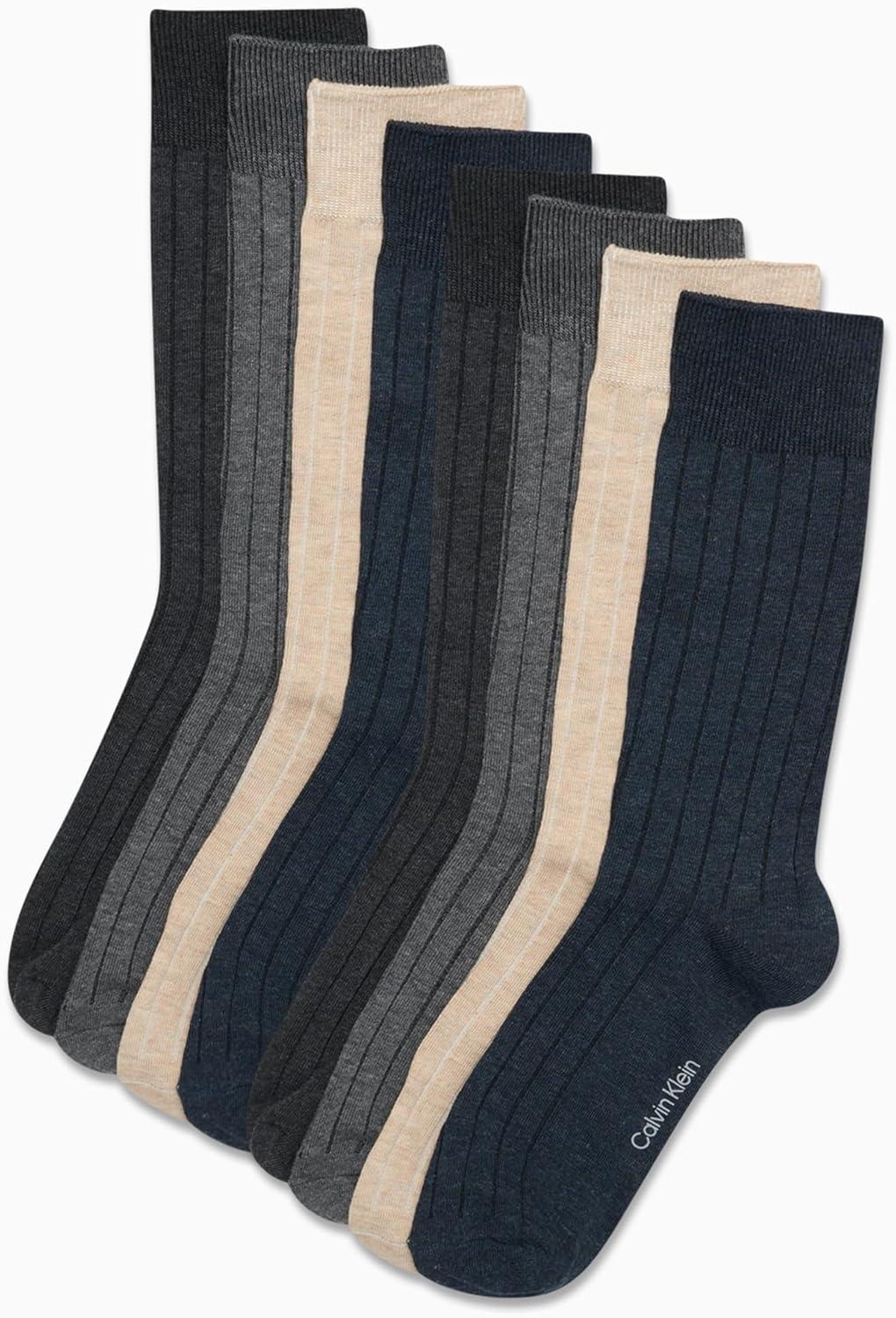 Calvin Klein Mens Dress Socks - 8 Pack Breathable Cotton Blend Work Crew Socks for Men for Casual Business & Formal Wear(Denim/Oatmeal Solid)