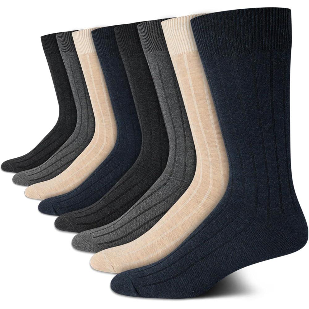 Calvin Klein Mens Dress Socks – 8 Pack Breathable Cotton Blend Work Crew Socks for Men for Casual Business & Formal Wear(Denim/Oatmeal Solid)