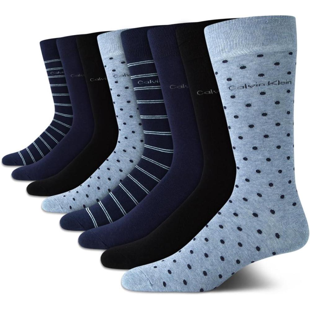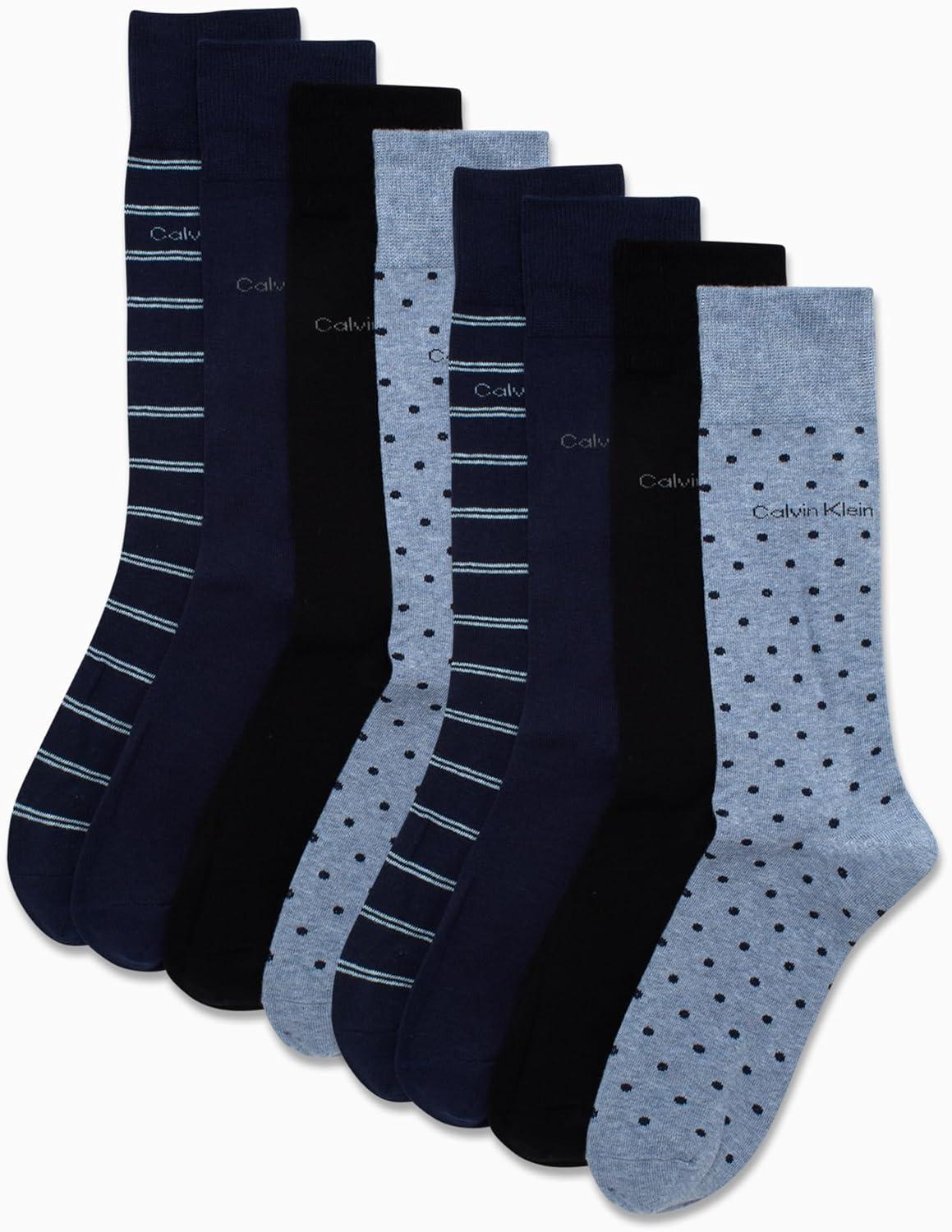 Calvin Klein Mens Dress Socks - 8 Pack Breathable Cotton Blend Work Crew Socks for Men for Casual Business & Formal Wear(Peacoat Assorted)