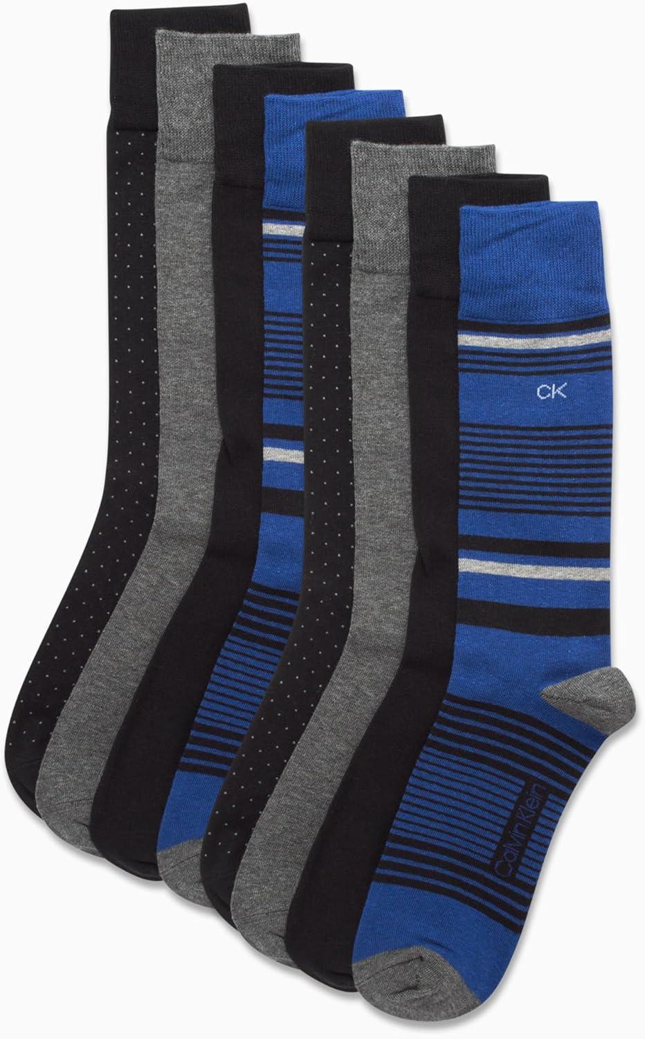 Calvin Klein Men's Dress Socks - 8 Pack Breathable Cotton Mid Crew Socks - Casual Long Work Socks for Men (Sizes 7-12)(Blue Stripe Multi)