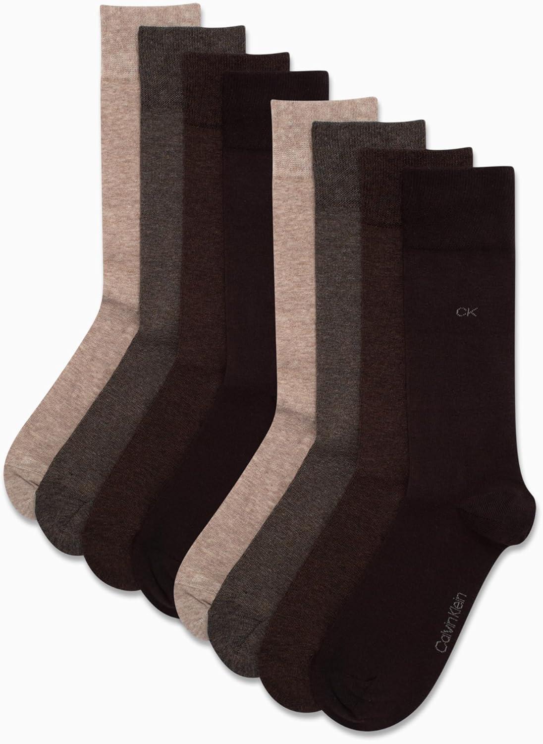 Calvin Klein Men’s Dress Socks – 8 Pack Breathable Cotton Mid Crew Socks – Casual Long Work Socks for Men (Sizes 7-12)(Brown Heather Assorted)
