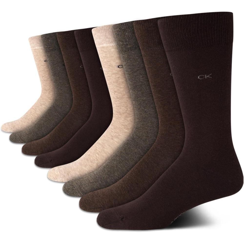 Calvin Klein Men's Dress Socks - 8 Pack Breathable Cotton Mid Crew Socks - Casual Long Work Socks for Men (Sizes 7-12)(Brown Multi)