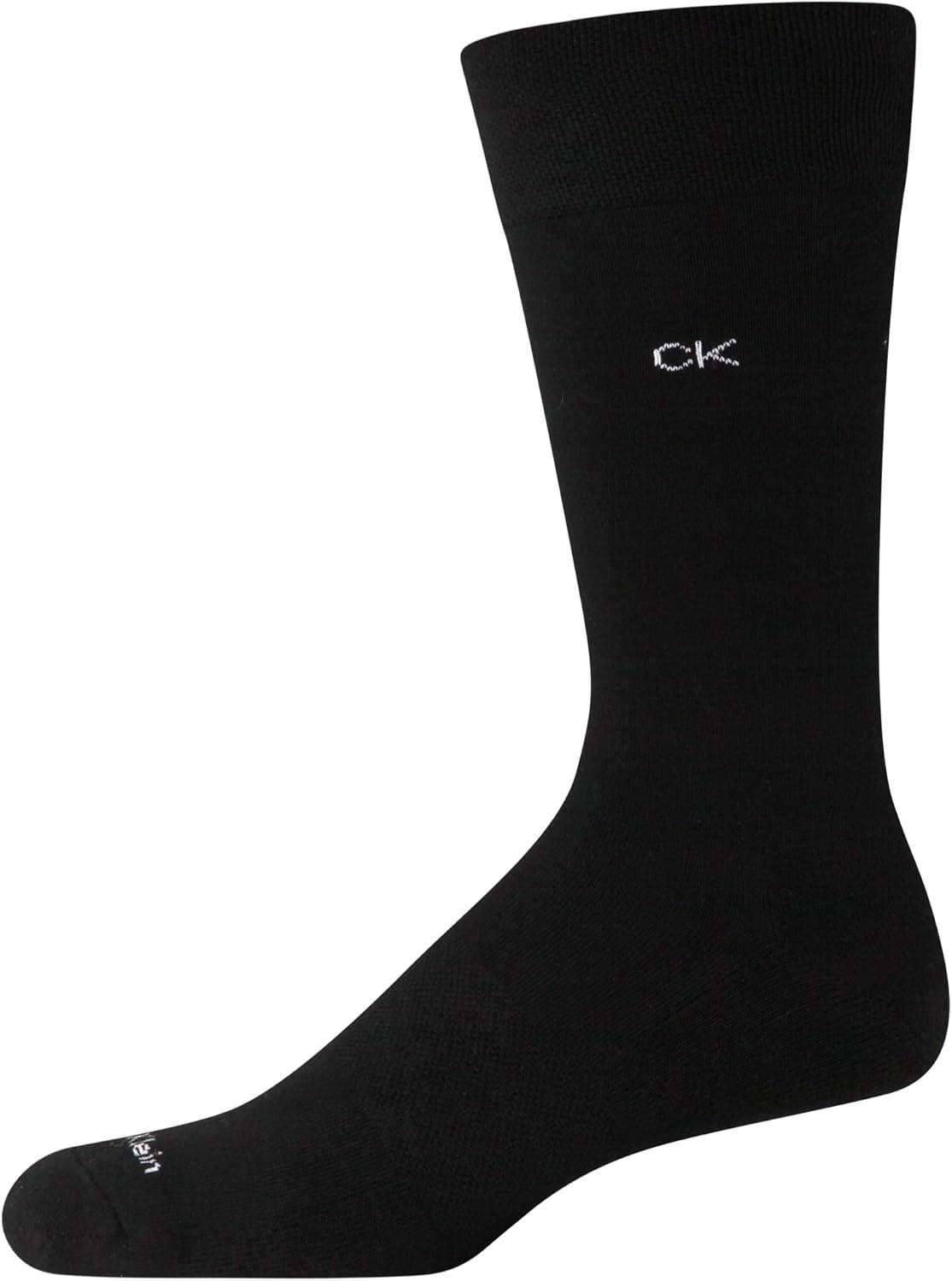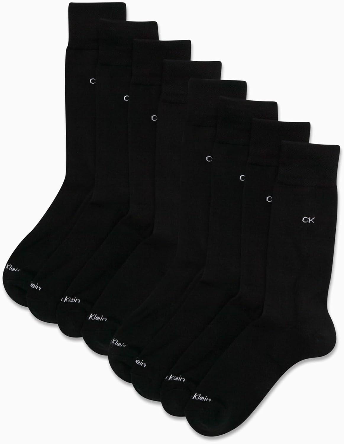 Calvin Klein Mens Dress Socks - 8 Pack Cotton Blend Cushioned Work Crew Socks for Men for Casual Business & Formal Wear(Black Logo)