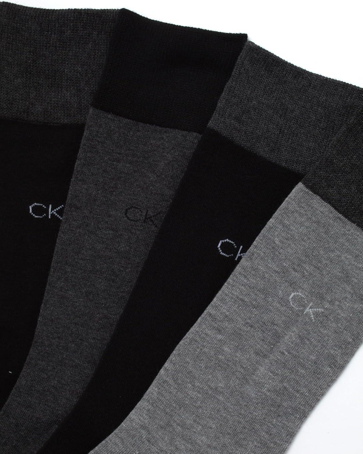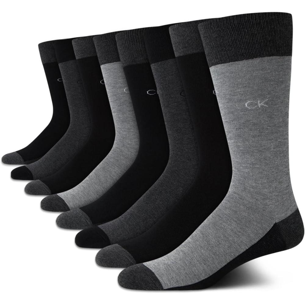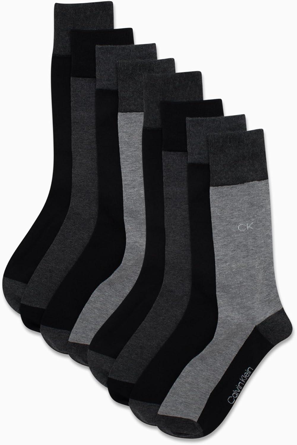 Calvin Klein Mens Dress Socks - 8 Pack Soft Cotton Blend Work Crew Socks for Men for Casual Business & Formal Wear(Black Grey)