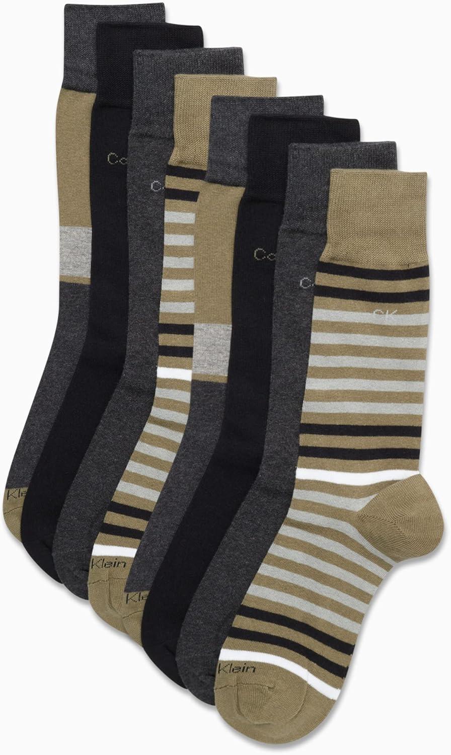 Calvin Klein Mens Dress Socks - 8 Pack Soft Cotton Blend Work Crew Socks for Men for Casual Business & Formal Wear(Kalamata)