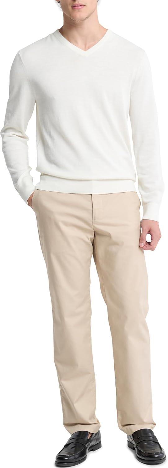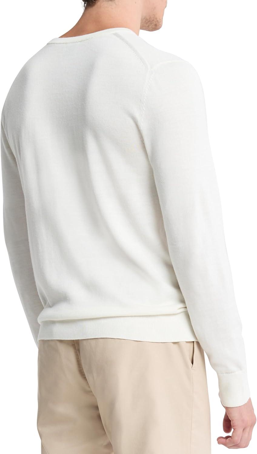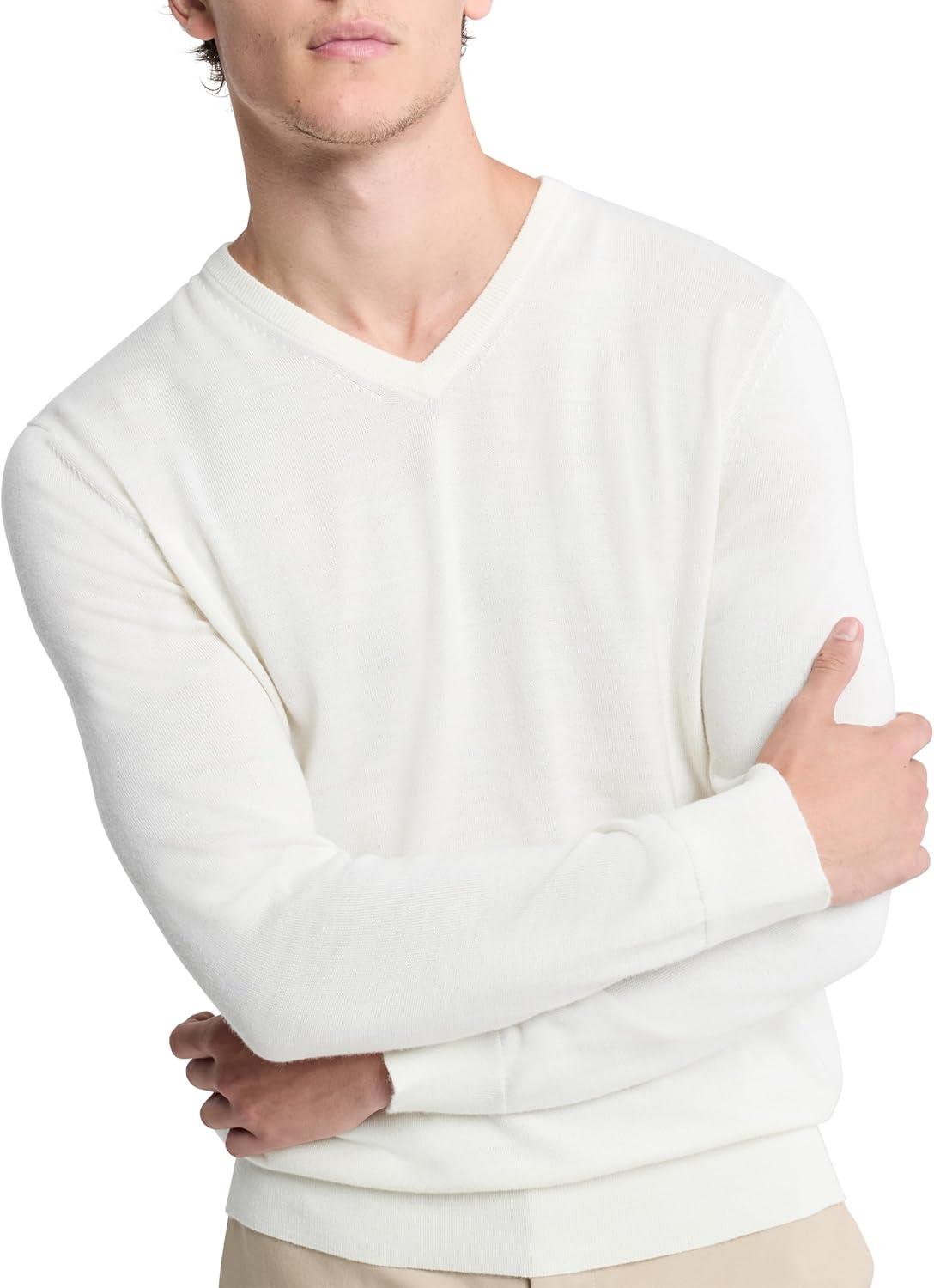 Calvin Klein Men’s Extra Fine Merino Wool Blend V-Neck Sweater(Antique White)