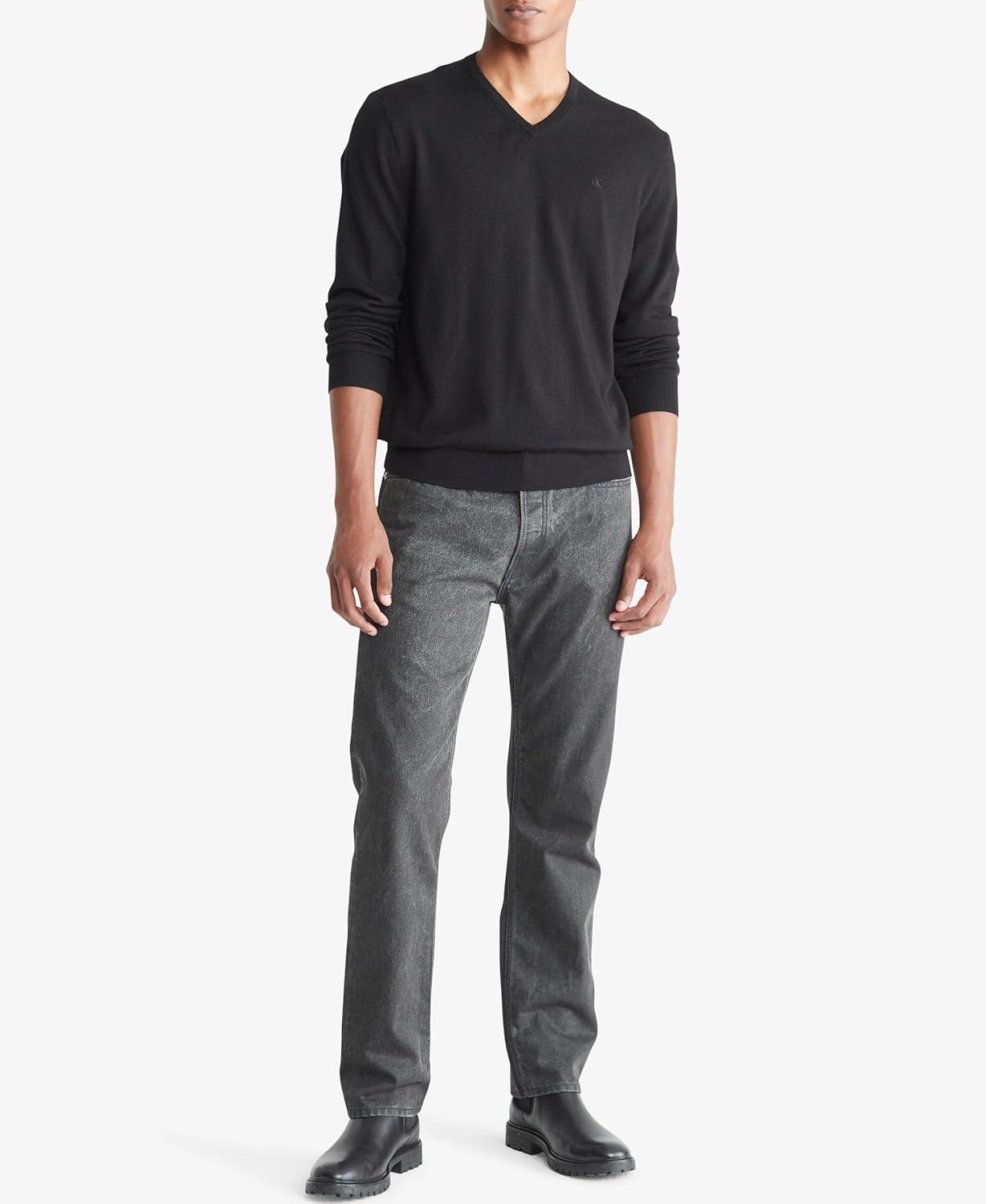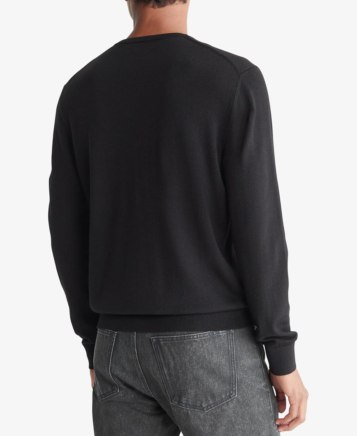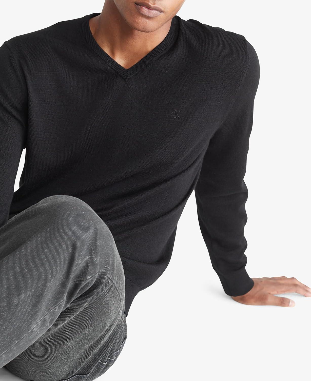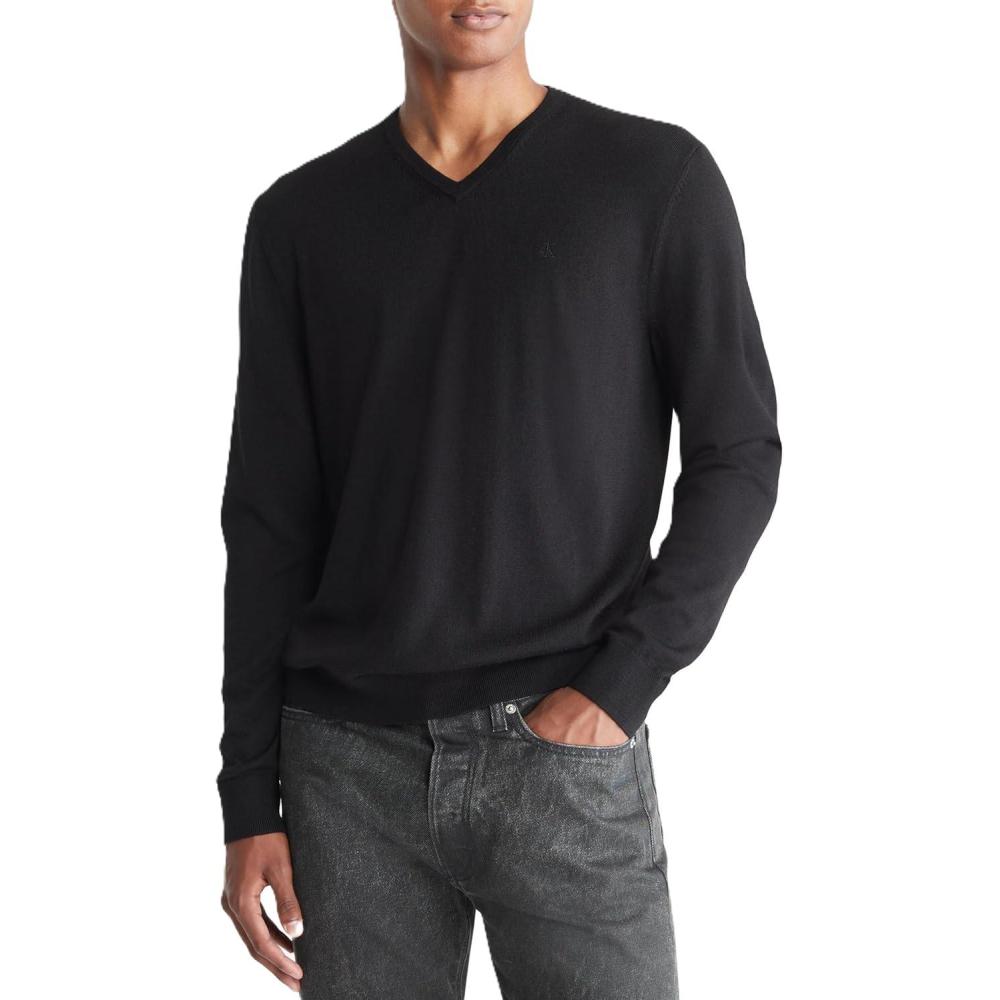 Crafted from an extra fine merino wool blend for lightweight comfort with excellent warmth, this Calvin Klein sweater features a v-neck and compact ck logo embroidery. Perfect as a layering piece, the merino wool with nylon also regulates body temperature, wicks away moisture and has odor-resistant, wrinkle-resistant properties inherent in the natural fibers.