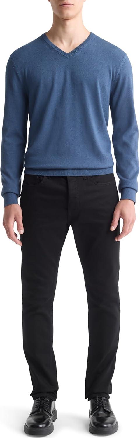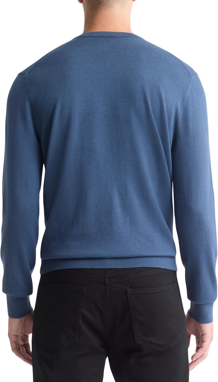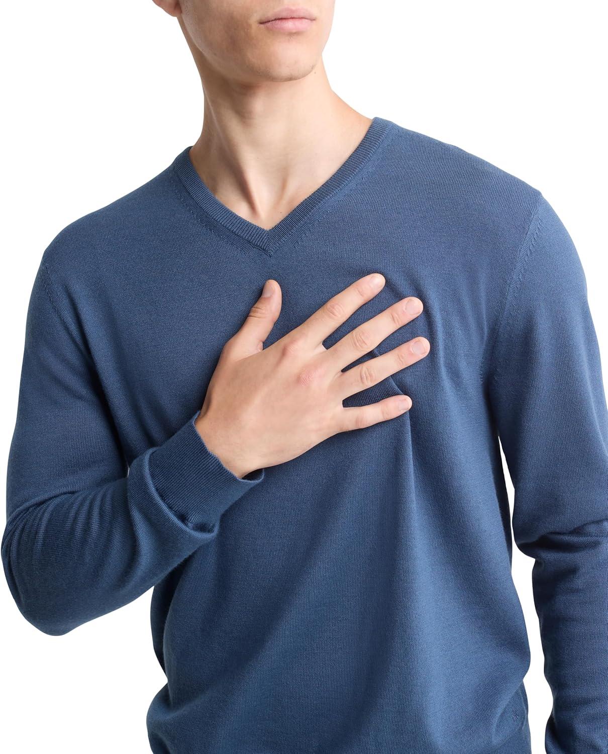 Calvin Klein Men’s Extra Fine Merino Wool Blend V-Neck Sweater(Insignia Blue)