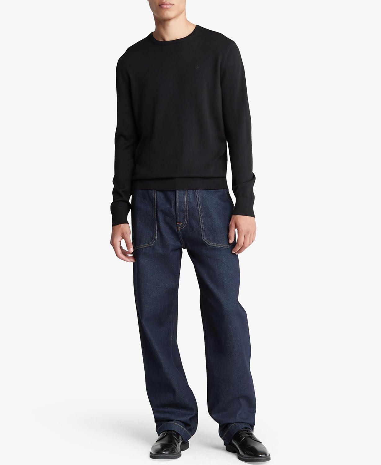 Calvin Klein Men’s Extra Fine Merino Wool Sweater(Black)