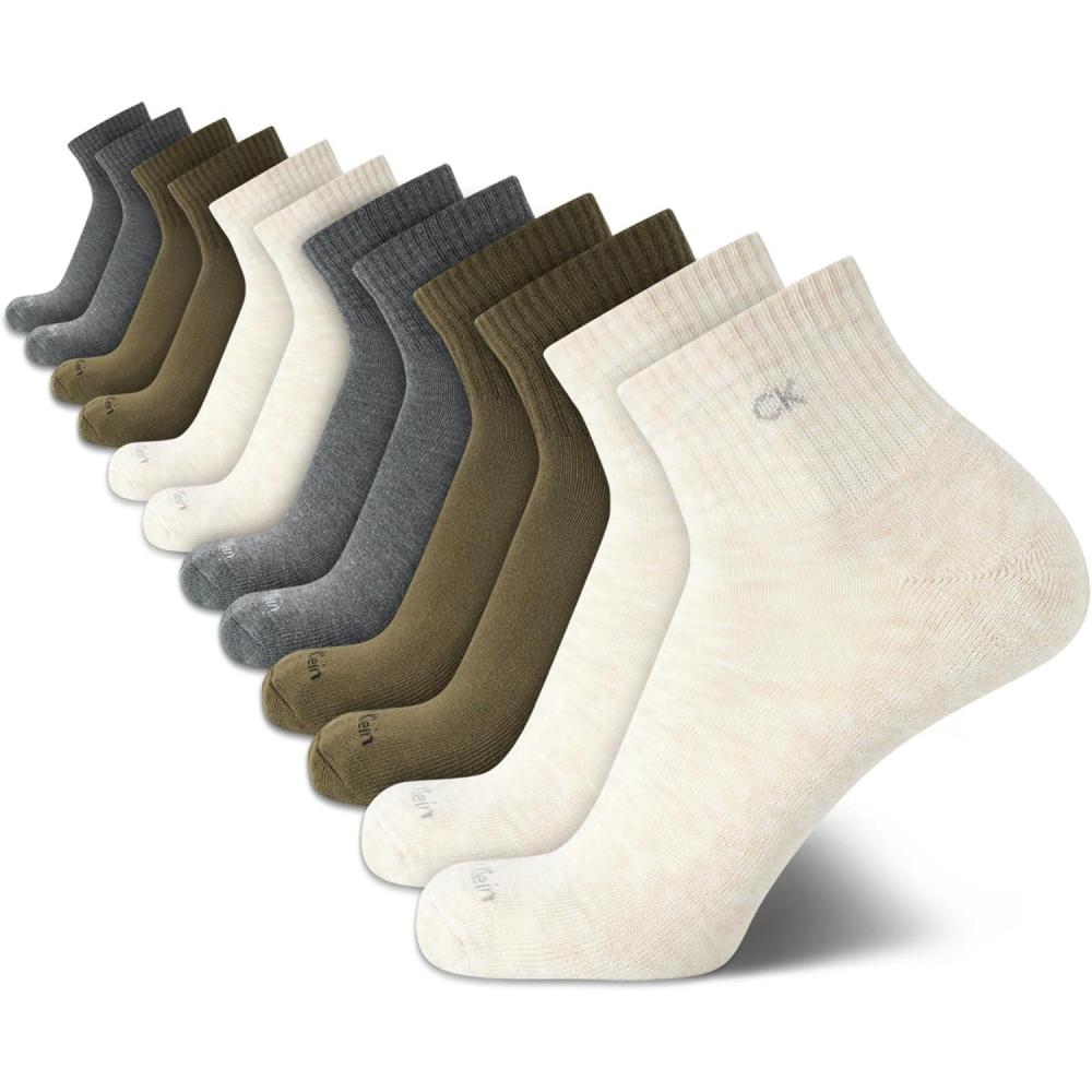 Calvin Klein Men's High Quarter Socks - 12 Pack Breathable Soft Cushion Mini Crew Athletic Socks for Men (Shoe Size: 6-12.5)(Beige/Grey)