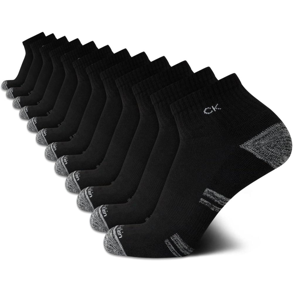 Calvin Klein Men’s High Quarter Socks – 12 Pack Breathable Soft Cushion Mini Crew Athletic Socks for Men (Shoe Size: 6-12.5)(Black Logo)