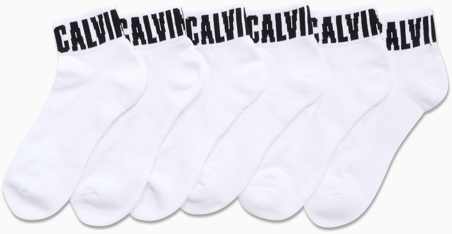 Calvin Klein Men's High Quarter Socks - 12 Pack Breathable Soft Cushion Mini Crew Athletic Socks for Men (Shoe Size: 6-12.5)(White Logo)