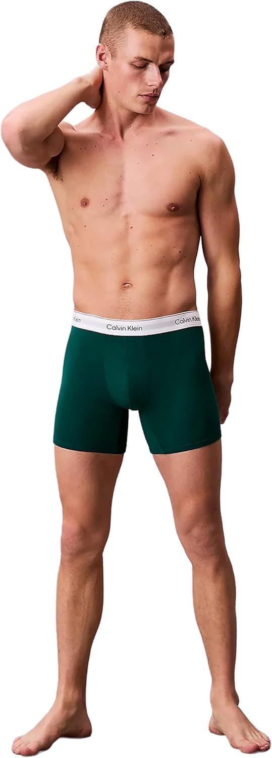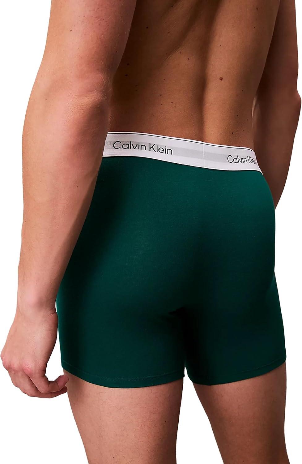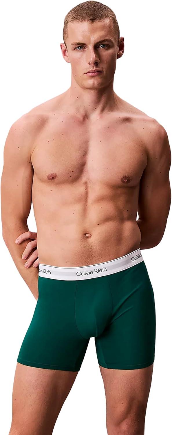 imageCalvin Klein mens Icon Cotton Stretch 3pack Boxer BriefTurfLogo Split Stripesrout Green Frozen Fjord
