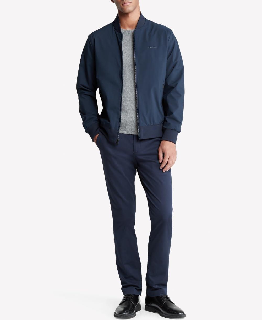 Calvin Klein Men's Matte Logo Zip Bomber Jacket(Sky Captain)