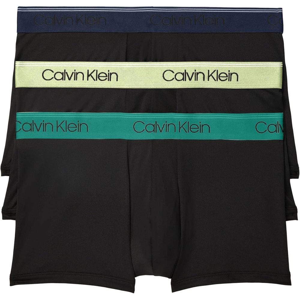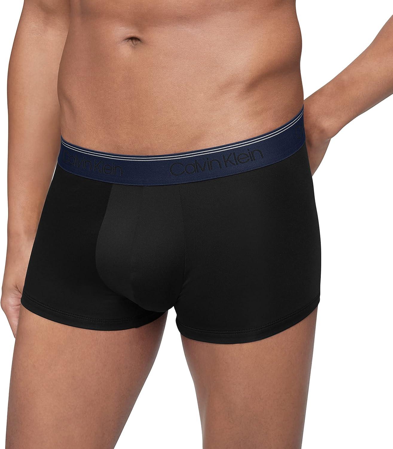 Calvin Klein Men’s Micro Stretch 3-pack Low Rise Trunk(Black Bodies W/ Cobalt Sapphire Spring Distorted Blue)