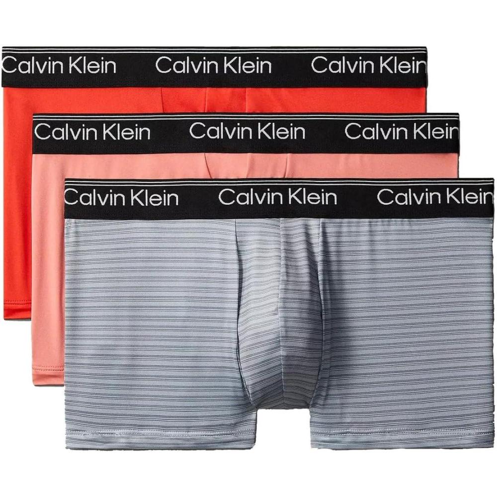 Calvin Klein Men’s Micro Stretch 3-pack Low Rise Trunk(Red/Grey Stripe/Peach)