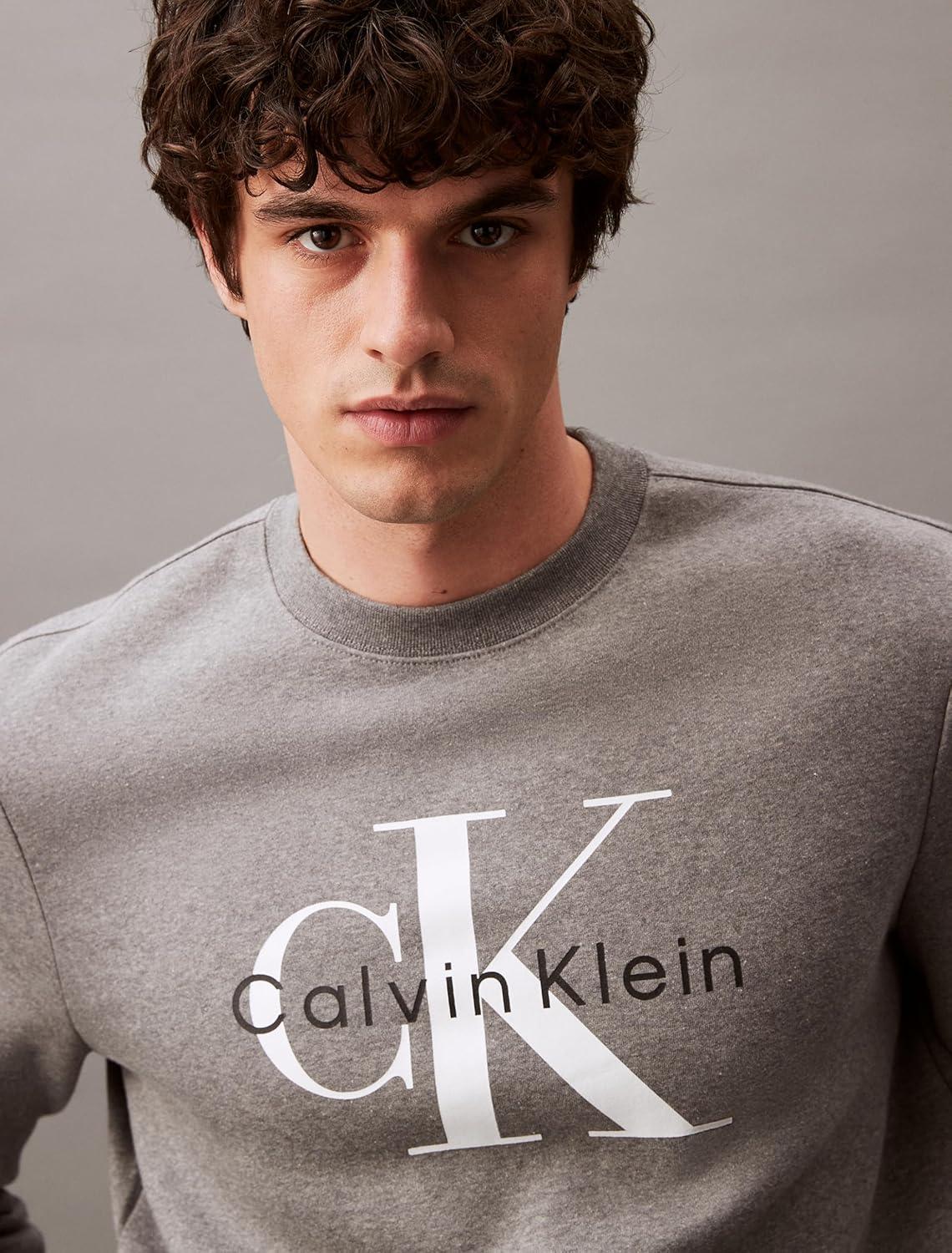 Calvin Klein Men’s Monogram Logo Crewneck Sweatshirt(Heroic Grey Heather)
