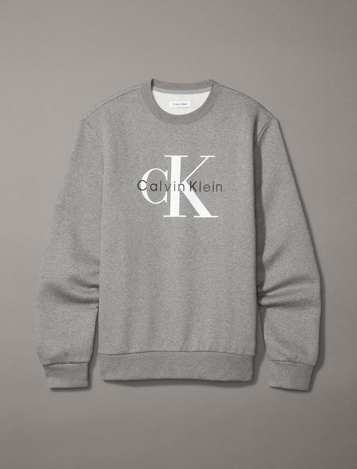 Calvin Klein Men's Monogram Logo Crewneck Sweatshirt(Heroic Grey Heather)