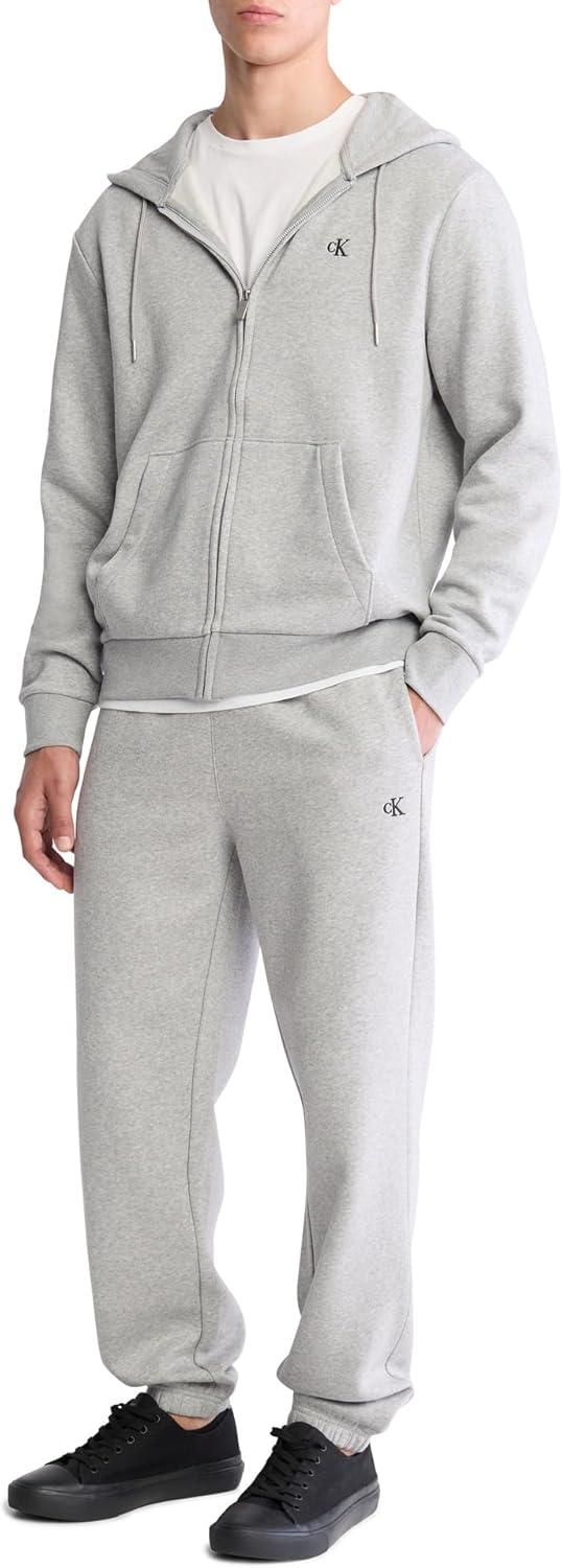 Designed with a solid body and a retro-inspired monogram logo, these updated Calvin Klein sweatpants feature a plush cotton knit fleece blend for premium, all-day comfort. Finished with a drawstring waistband and pull-on styling, angled front slip pockets, straight legs and banded ankles. An on-trend look, perfect to complement Calvin Klein wovens, polo shirts and more.