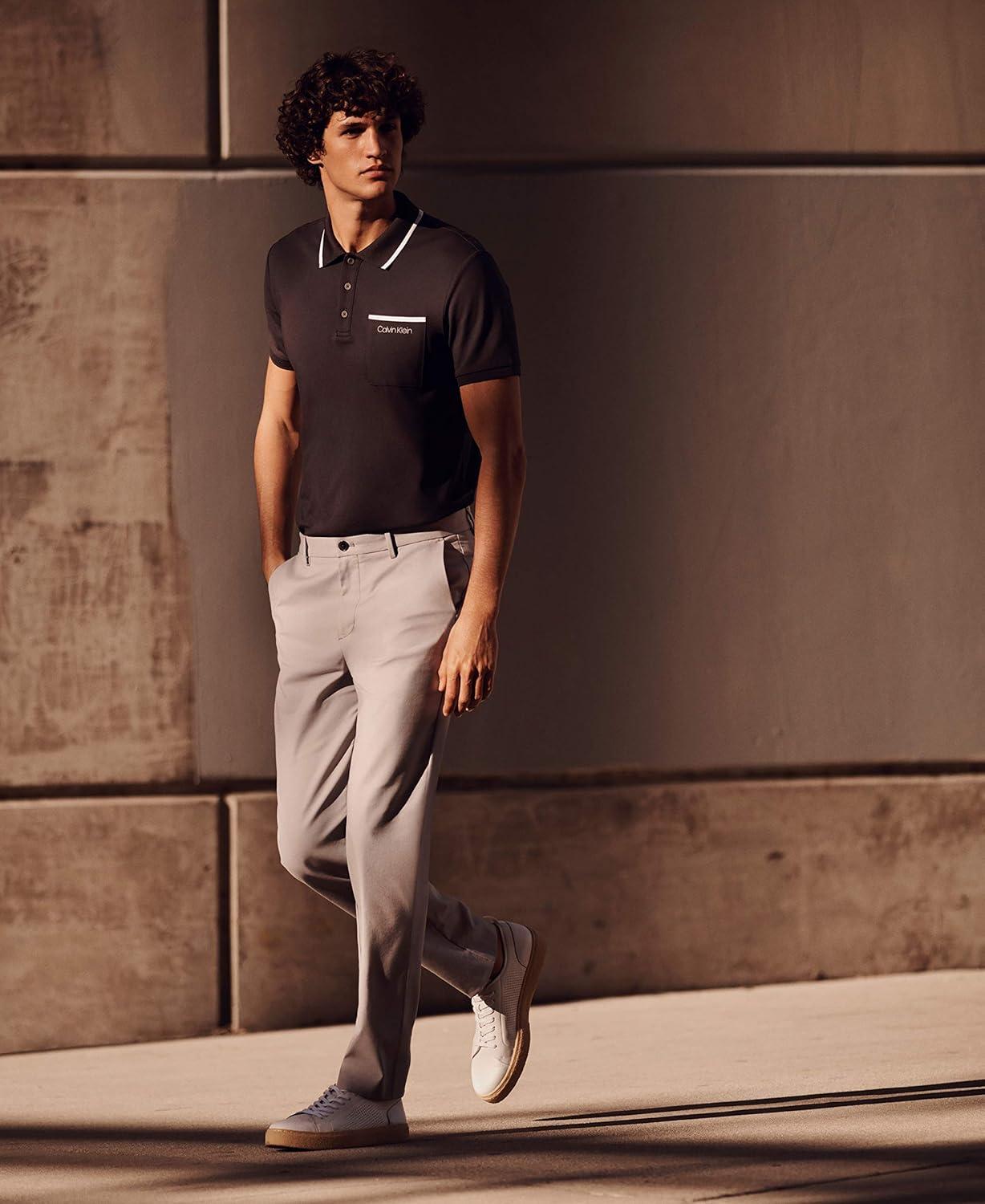 Feature packed with innovative fabric technologies, these refined pants are part of our move 365 collection, designed for life-on-the-go. Crafted from an extra soft cotton stretch blend for all-day comfort, this sleek style is made with wrinkle resistant fabric, a stretch waistband for an optimal feel, 5-pocket styling, logo detailing and a slim fit for a tailored look.