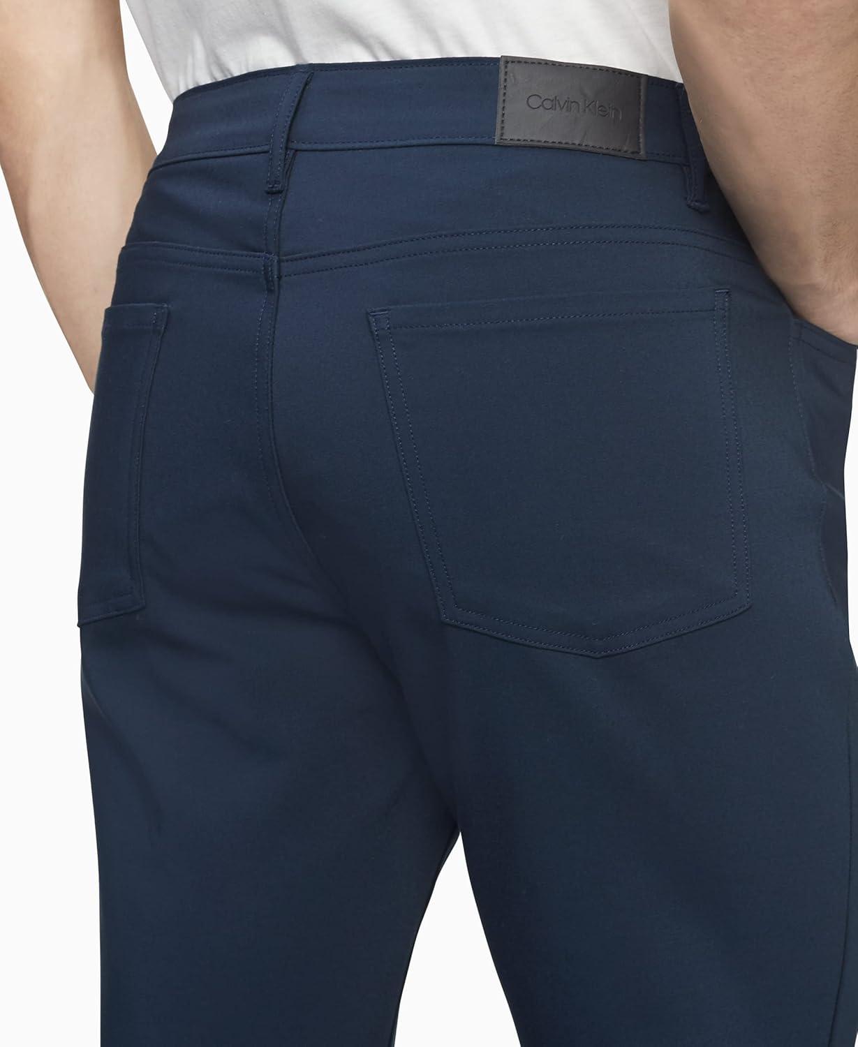 Calvin Klein Men’s Move 365 Stretch Slim Fit Wrinkle Resistant Tech Woven Pant(Sky Captain)