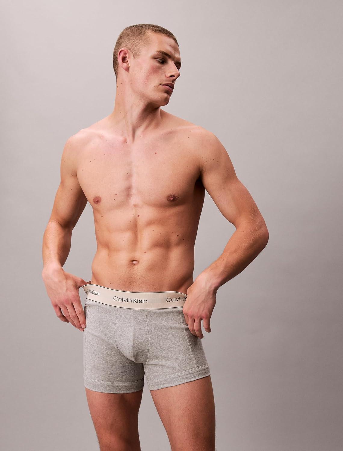 Calvin Klein Men’s Pima Cotton 3-Pack Trunk(Oyster Gray Grey Heather White)