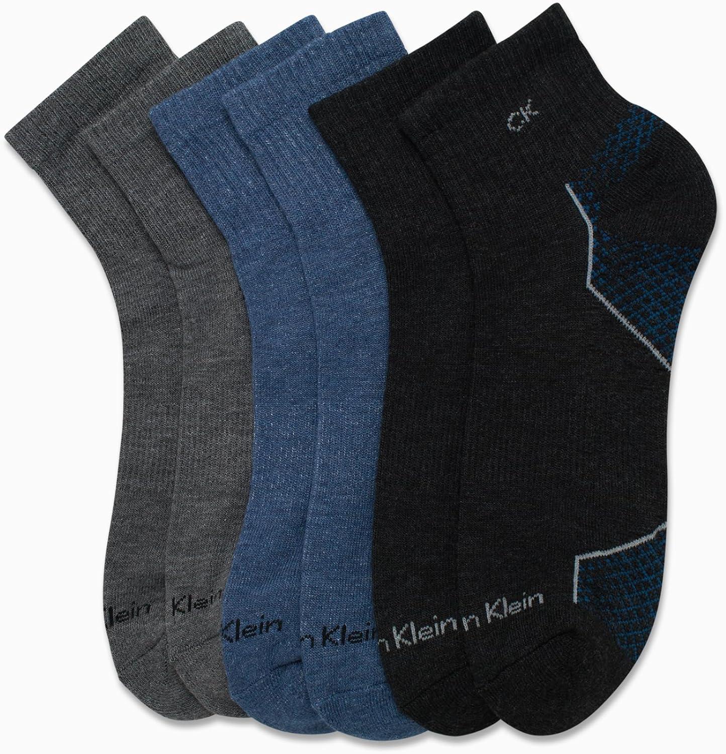 Calvin Klein Mens Quarter Socks - 6 Pack Breathable Cushion Athletic Ankle Socks for Men for Running and Workout (7-12)(Heather Grey)