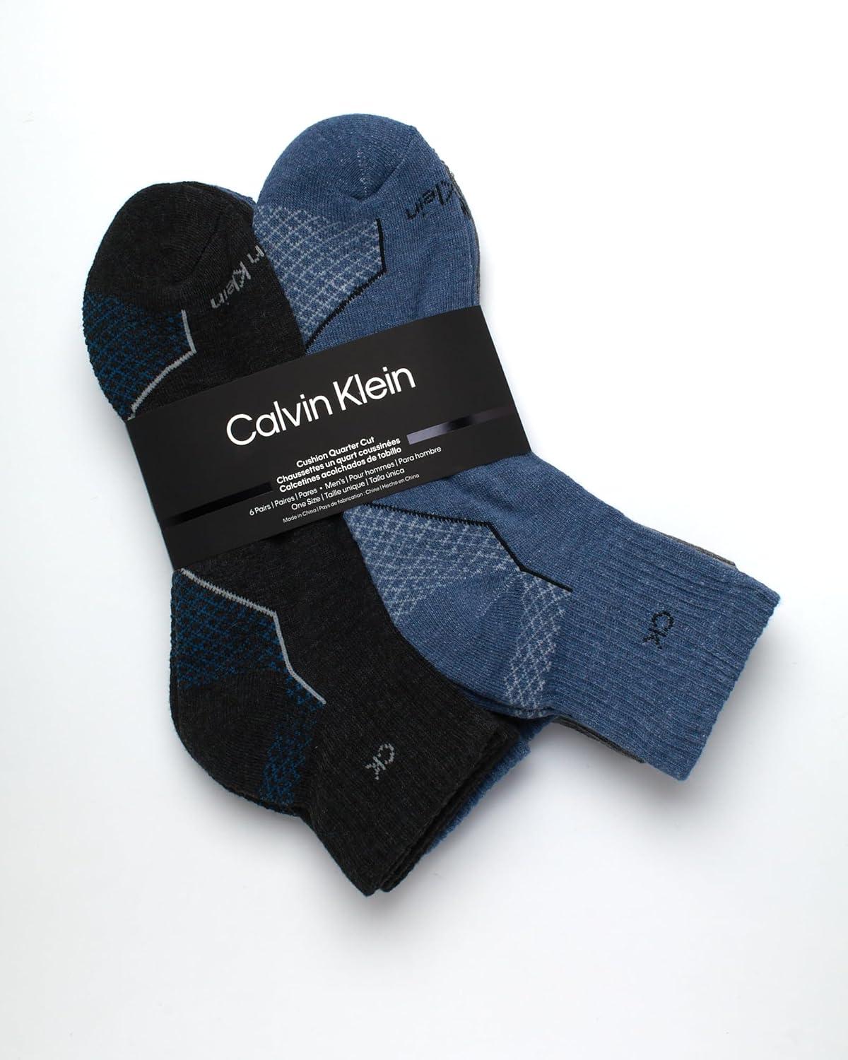 Calvin Klein Mens Quarter Socks – 6 Pack Breathable Cushion Athletic Ankle Socks for Men for Running and Workout (7-12)(Grey/Black)