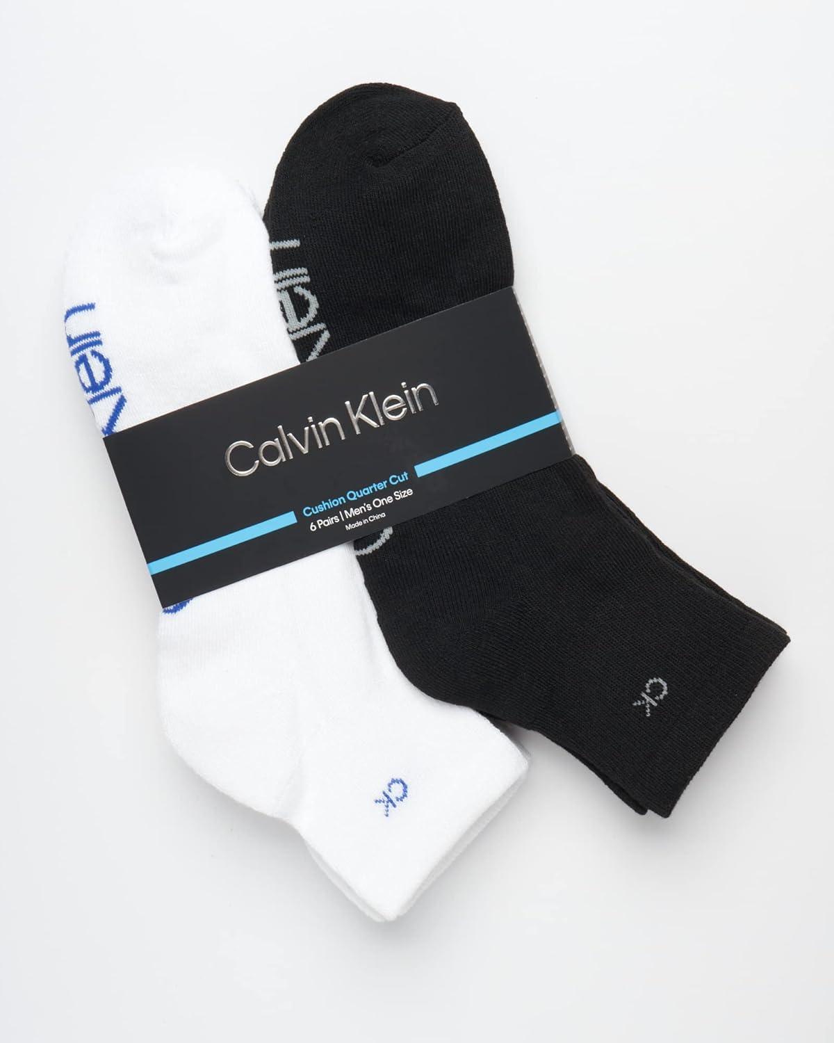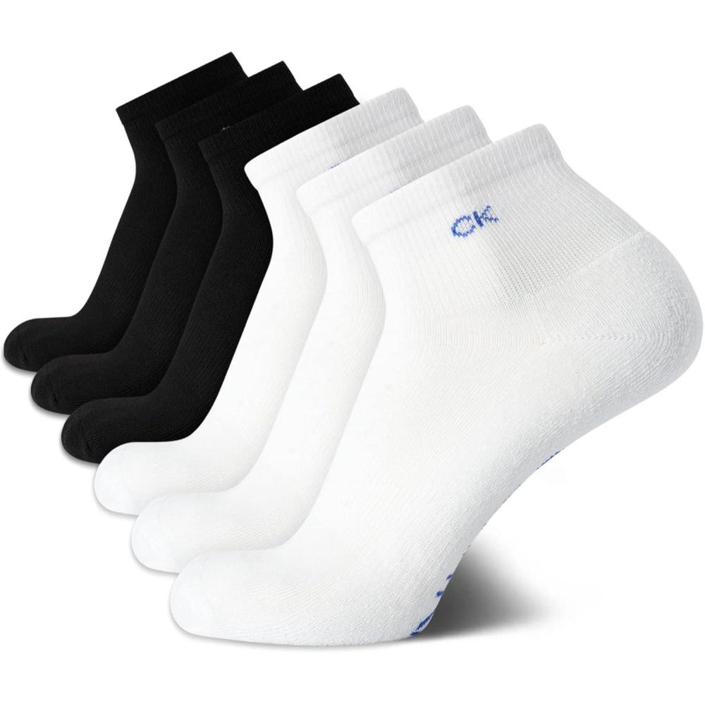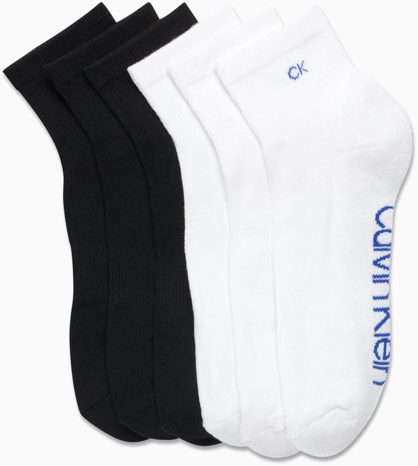 Calvin Klein Mens Quarter Socks - 6 Pack Cushioned Mini Crew Athletic Socks for Men, Ideal for Running, Sport, and Hiking(Black/White)