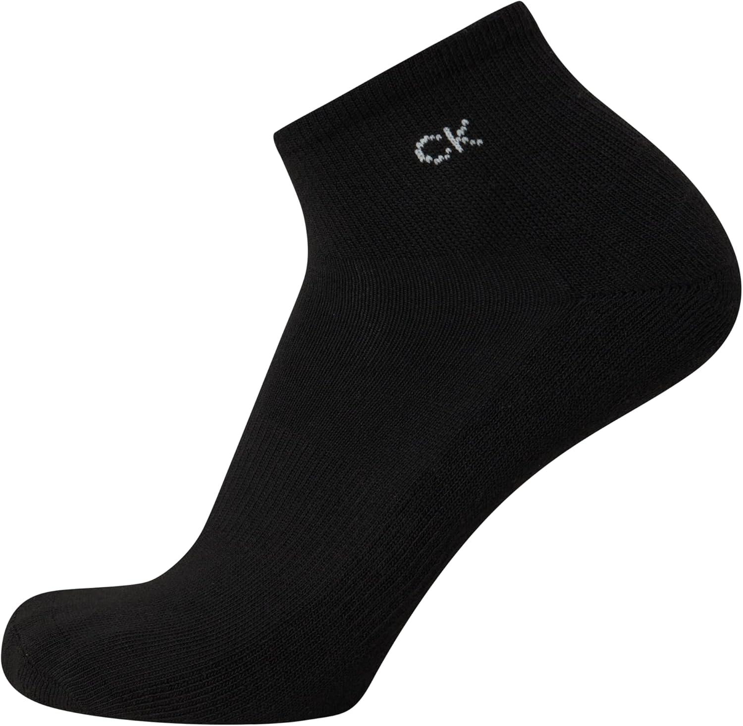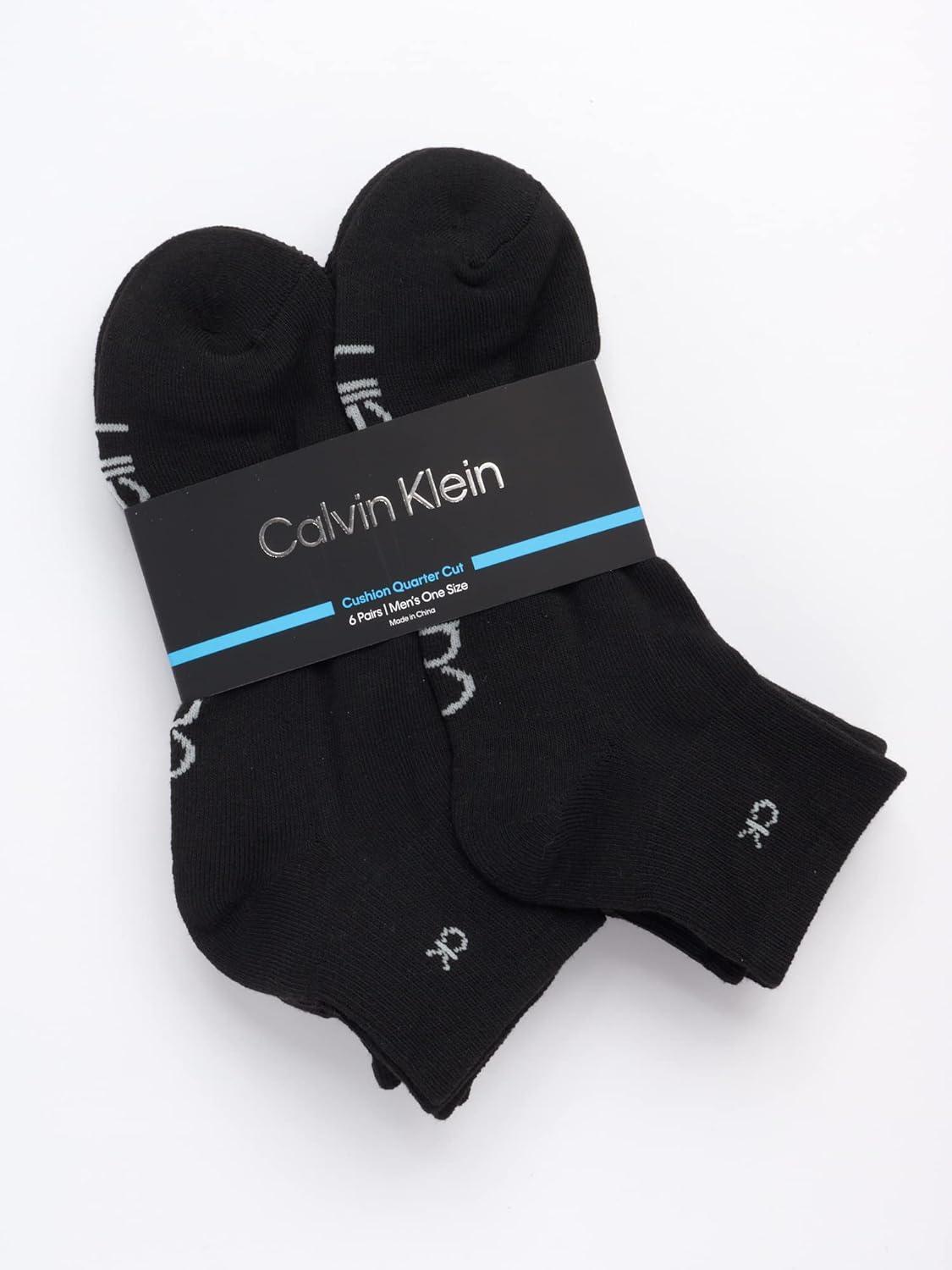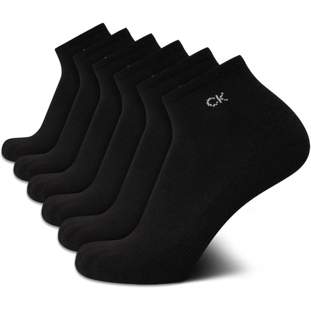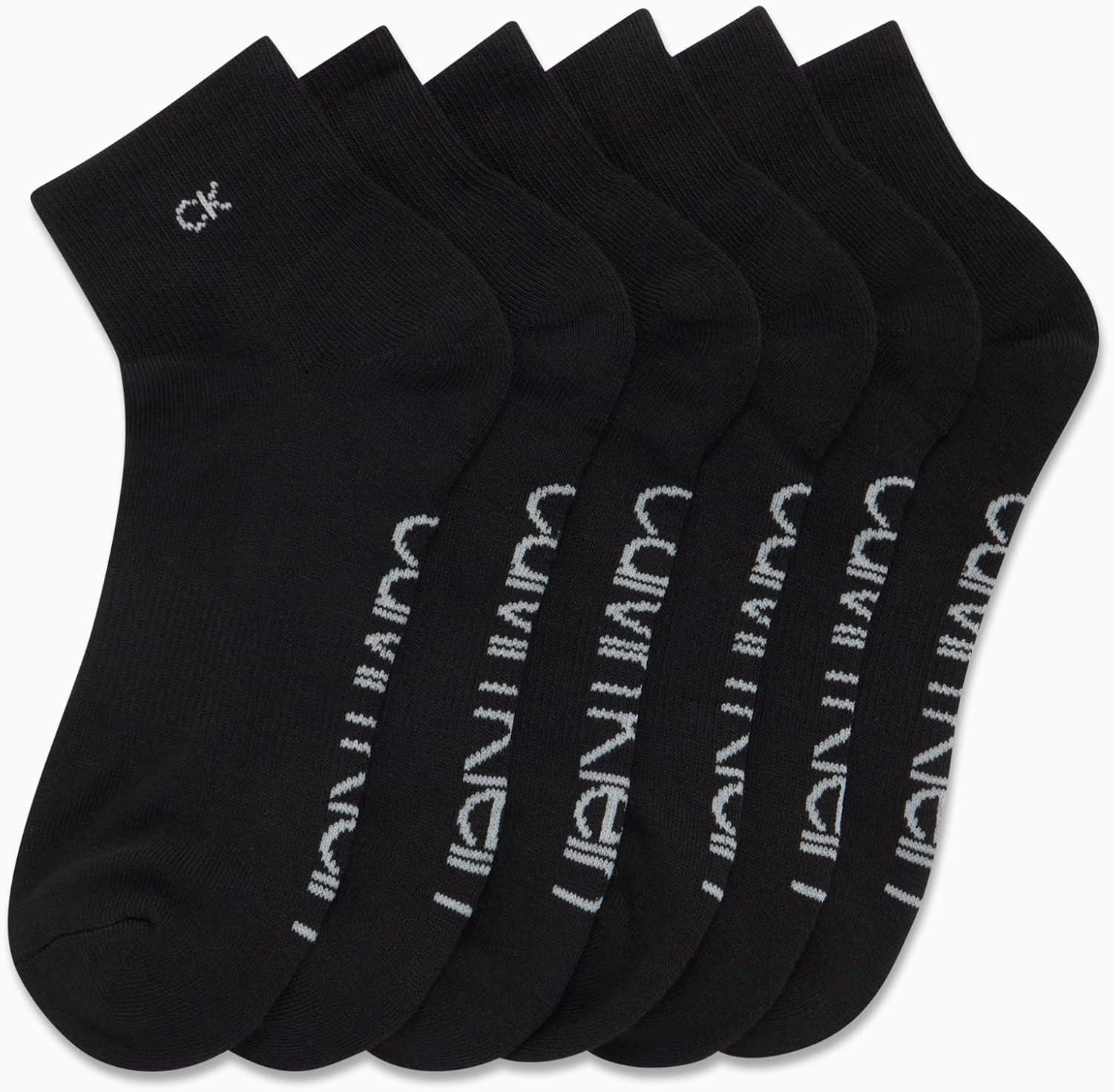 Calvin Klein Mens Quarter Socks - 6 Pack Cushioned Mini Crew Athletic Socks for Men, Ideal for Running, Sport, and Hiking(Black)