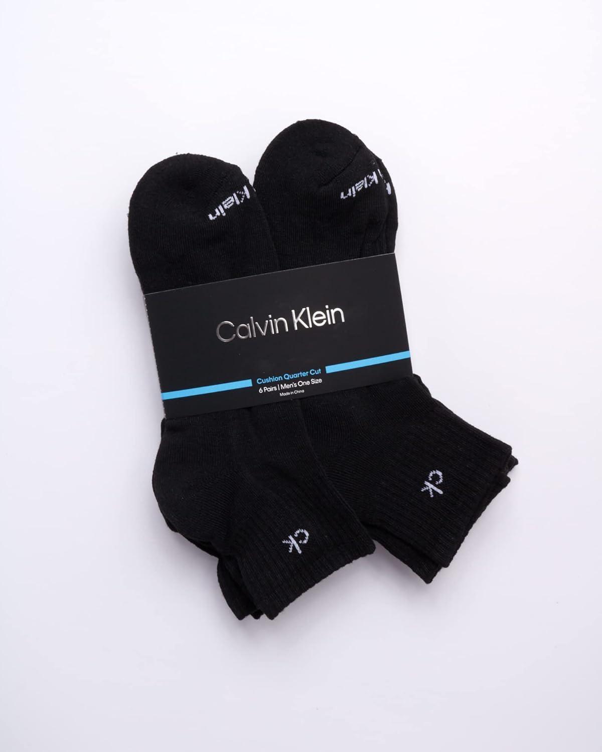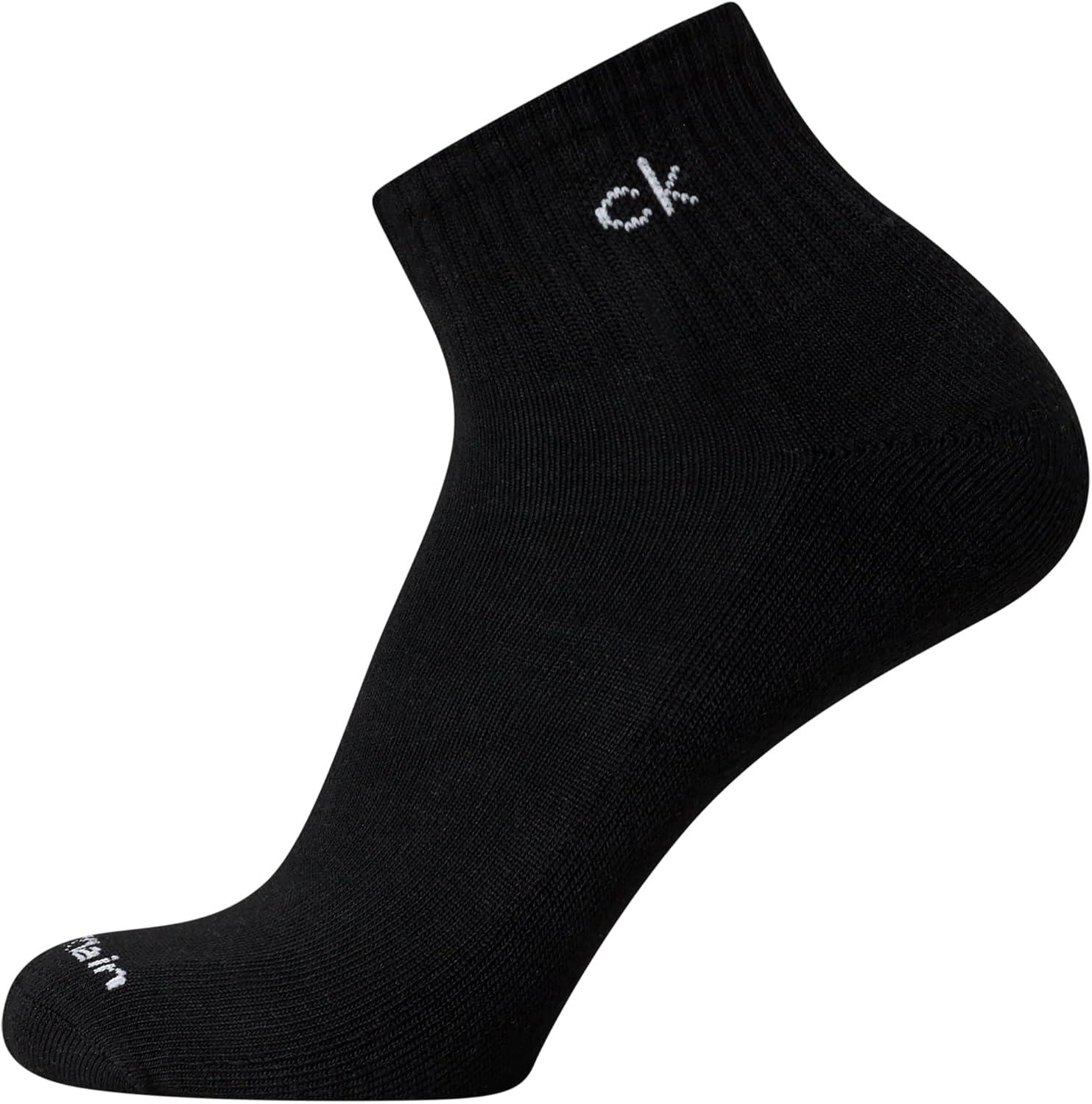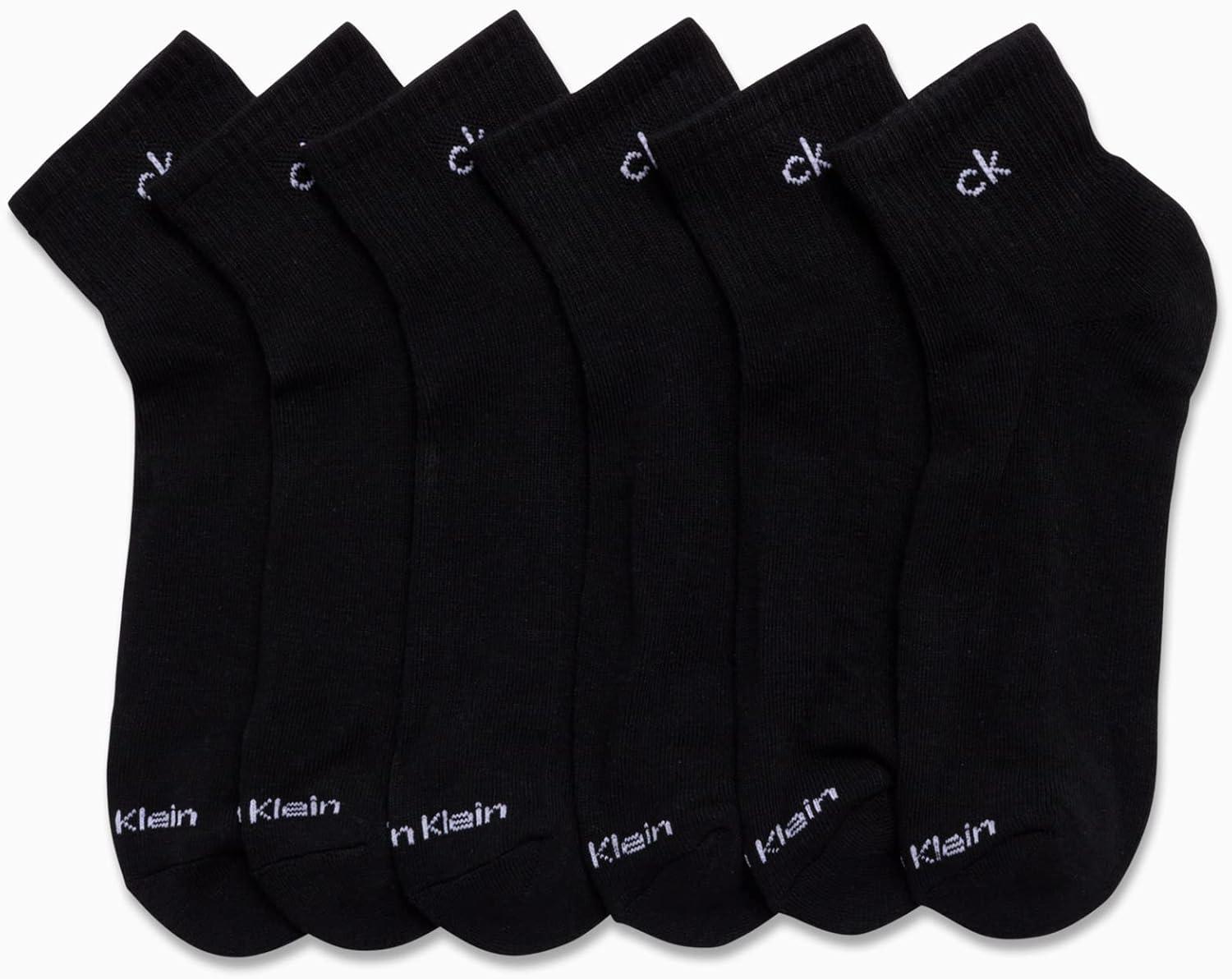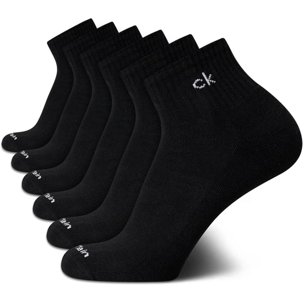 Calvin Klein Mens Quarter Socks - 6 Pack Cushioned Mini Crew Athletic Socks for Men, Ideal for Running, Sport, and Hiking(Solid Black)